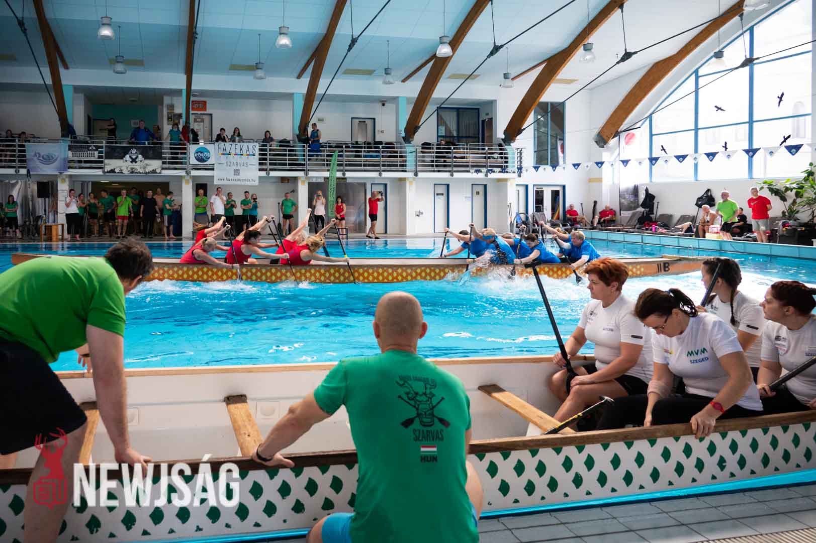 A tavalyi kényszerű kihagyás után ismét medencés sárkányhajó versenyt rendeztek a szarvasi Szent Klára Gyógyfürdőben. A helyi Körös Dragon Sárkányhajós és Szabadidős Sport Egyesület volt a házigazdája a honi szövetség által kiírt 8. Medencés Sárkányhajó Nyílt Magyar Bajnokságnak, valamint a három állomásból álló Magyar Kupa sorozat első fordulójának.