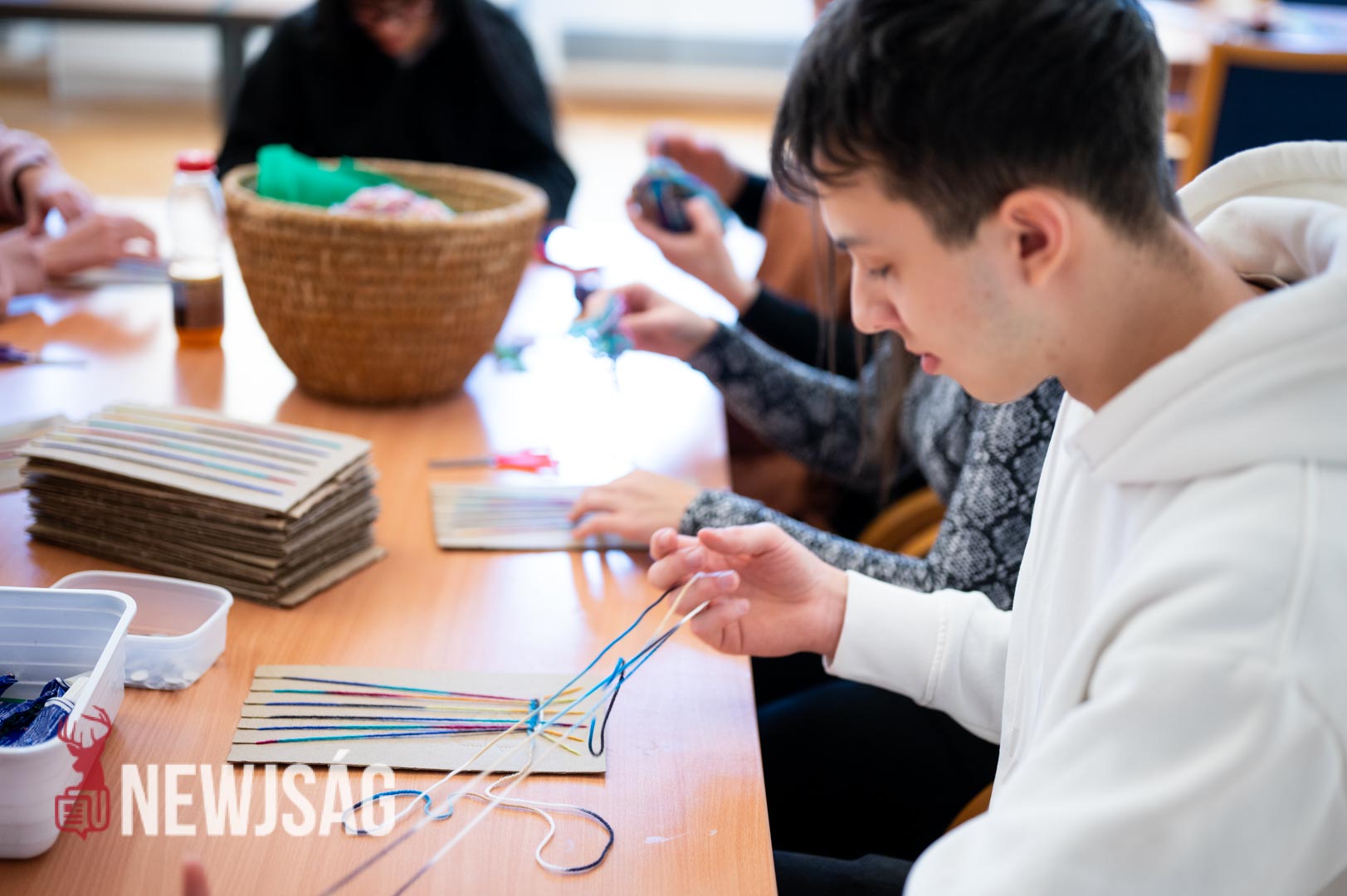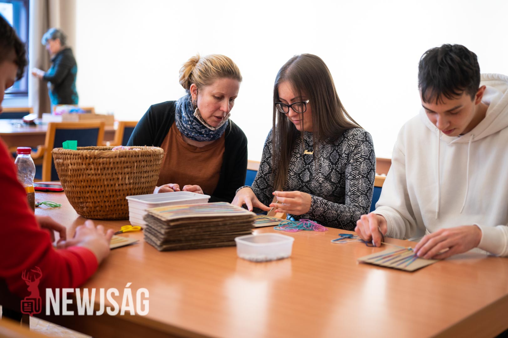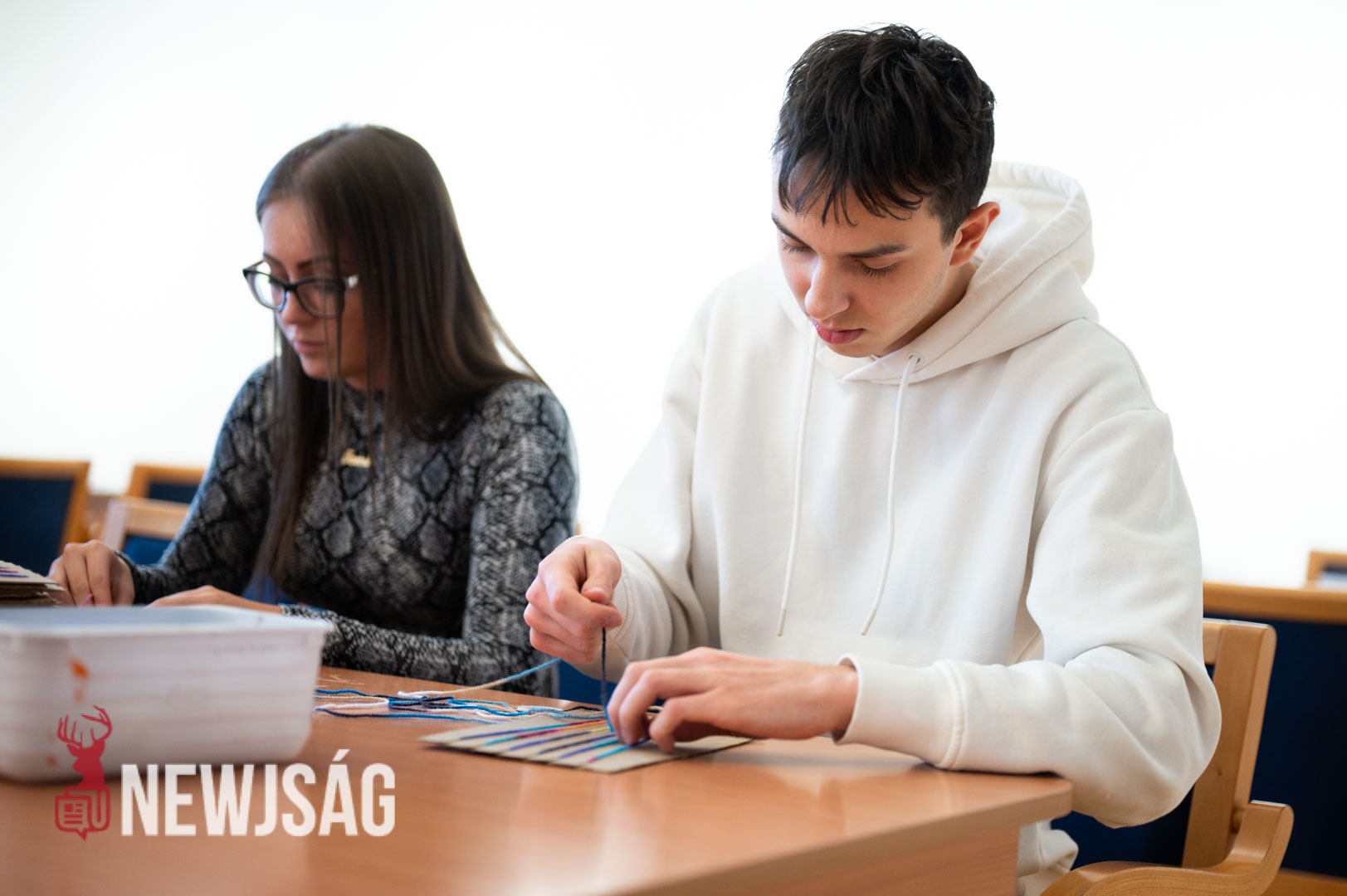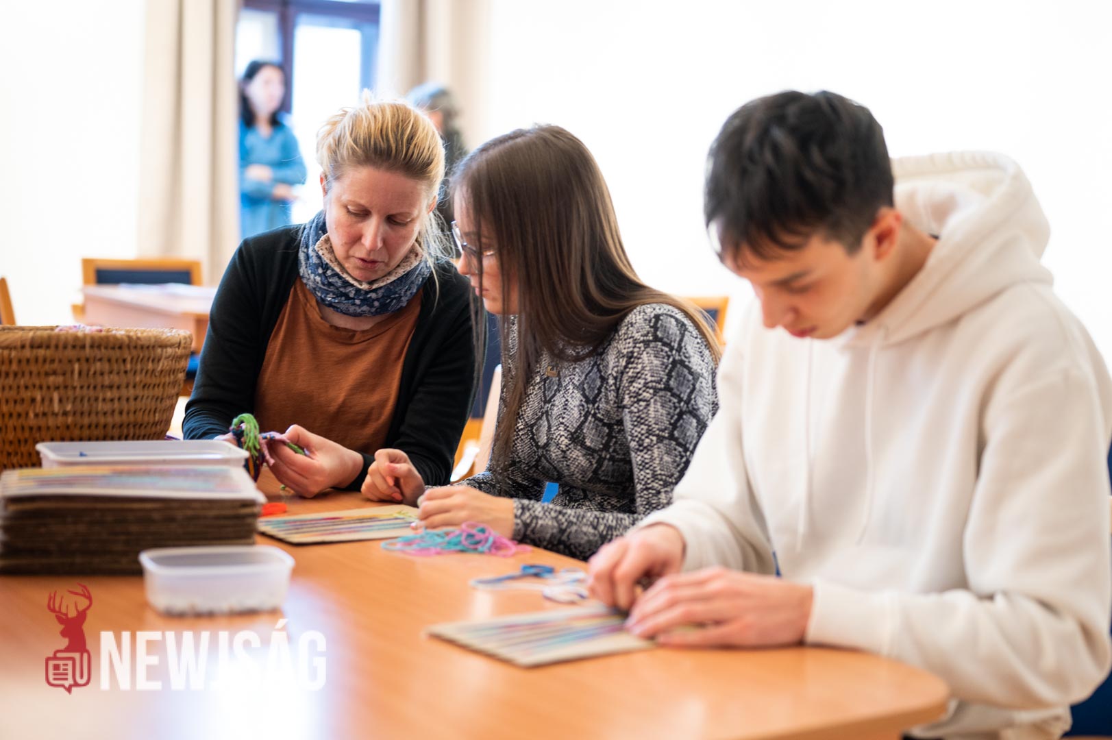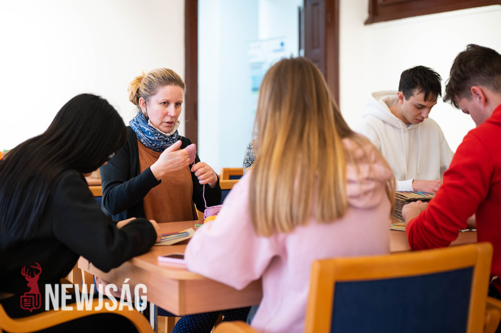 A bokrétakészítésen túl a fonóhoz kapcsolódva bemutatták a szövés folyamatát is a családi délutánra érkezőknek. Programtorlódások miatt a múzeum fonójába még nem érkeztek meg a lányok és a legények, de már szorgalmasan gyakorolták a szövést a Vajda Péter Evangélikus Gimnáziumból az iskolai közösségi szolgálat keretében segíteni érkezett diákok.
