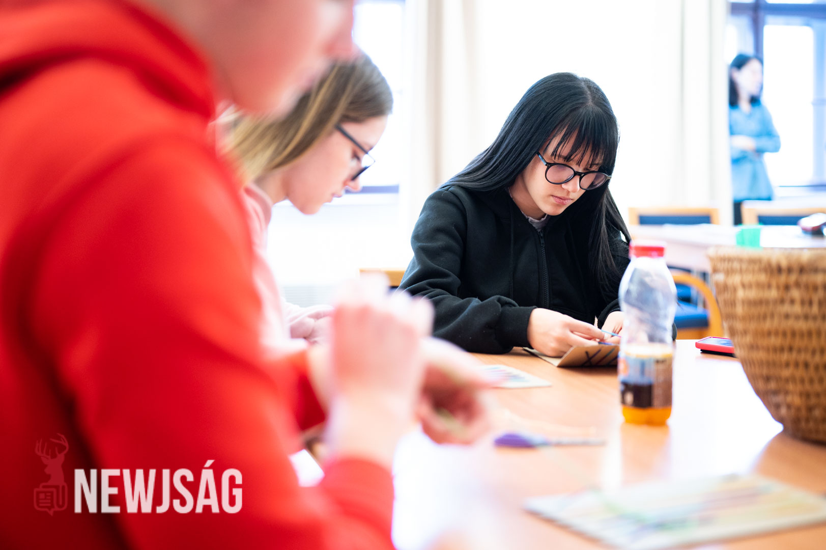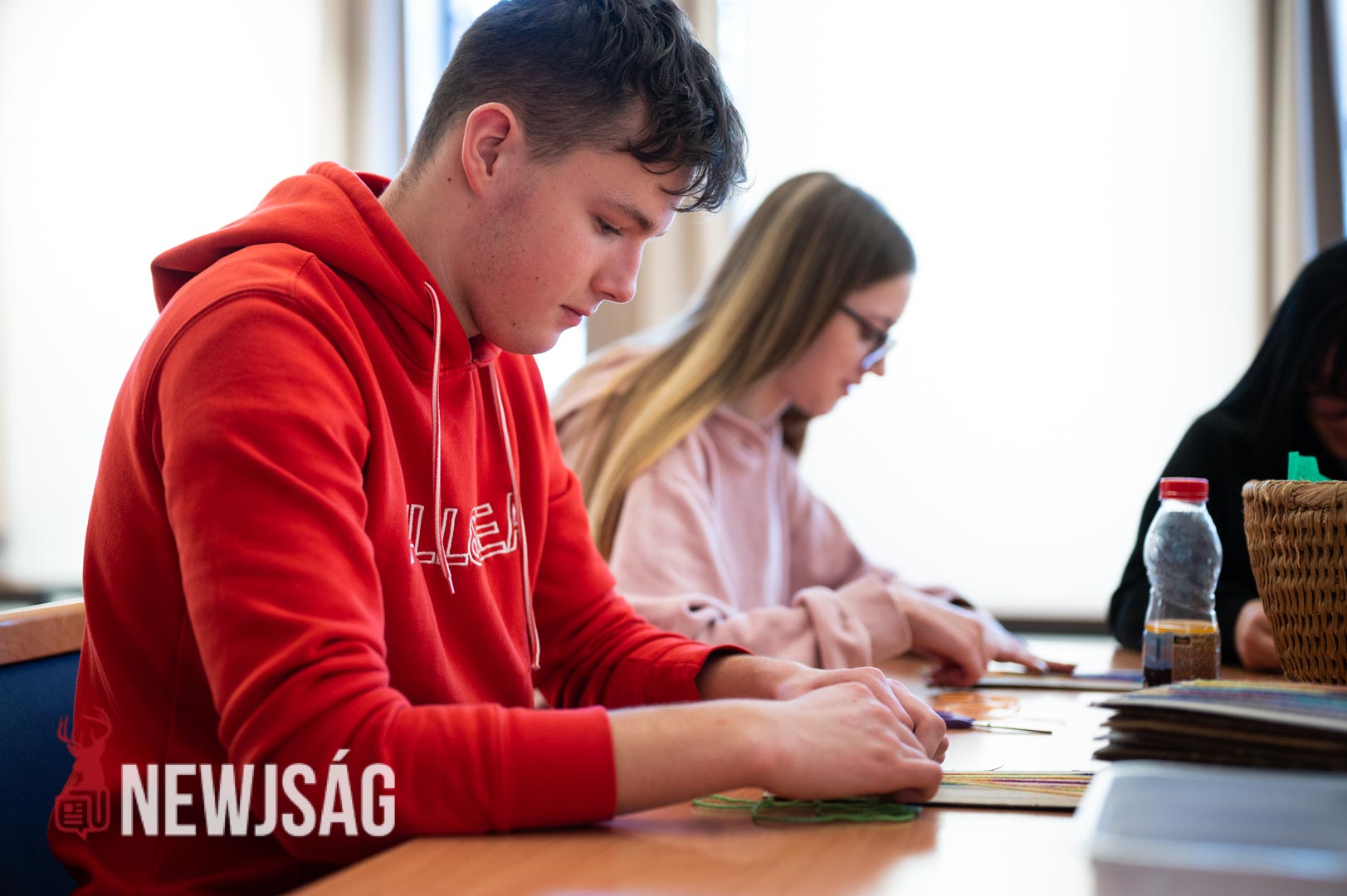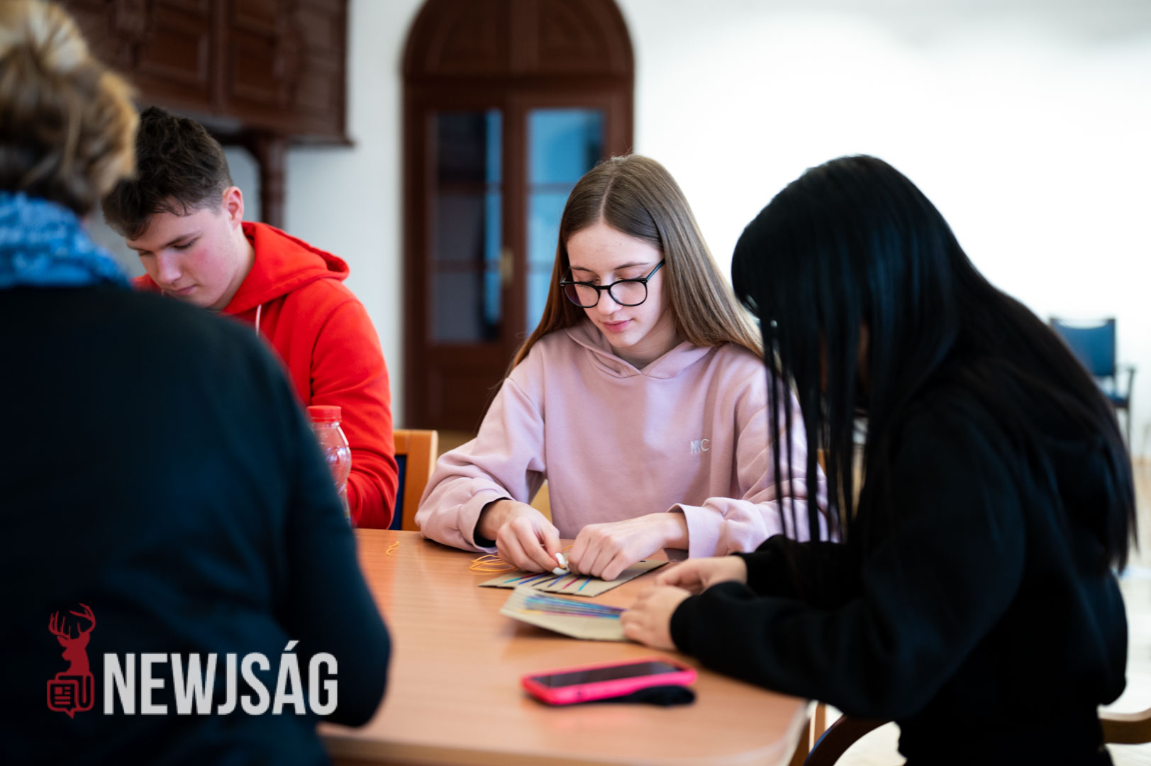 A kézműveskedés mellett természetesen ismét a díszterem parkettájára került az óriás társasjáték, amit ezúttal a farsangra jellemző állomásokkal ruháztak fel.