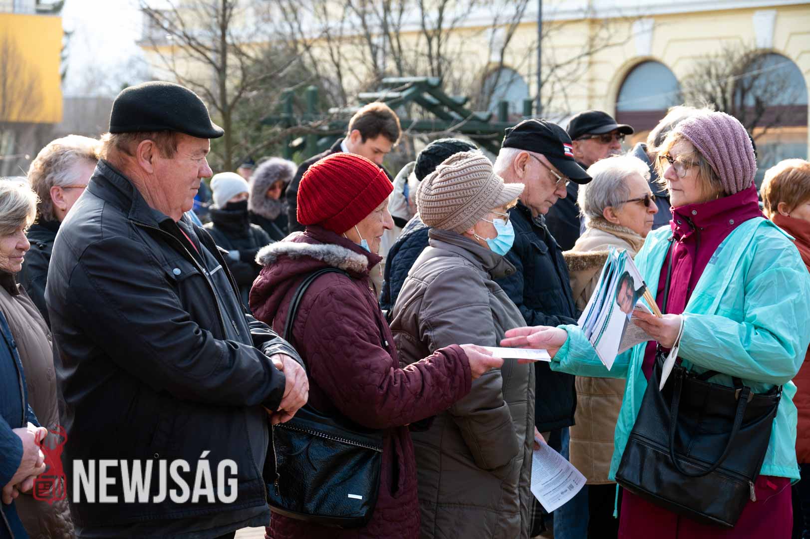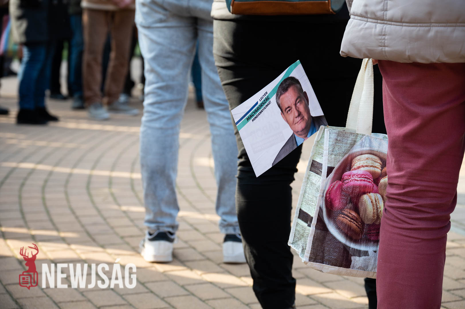 Arra kérte a körülötte állókat, hogy szavazzanak a Márki-Zay Péter vezette ellenzéki listára, szavazzanak Kondé Gáborra, mert most ez a legfontosabb történelmi küldetésünk.