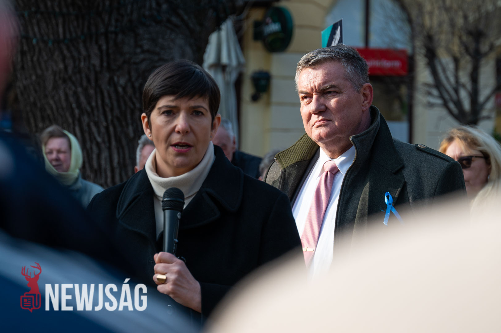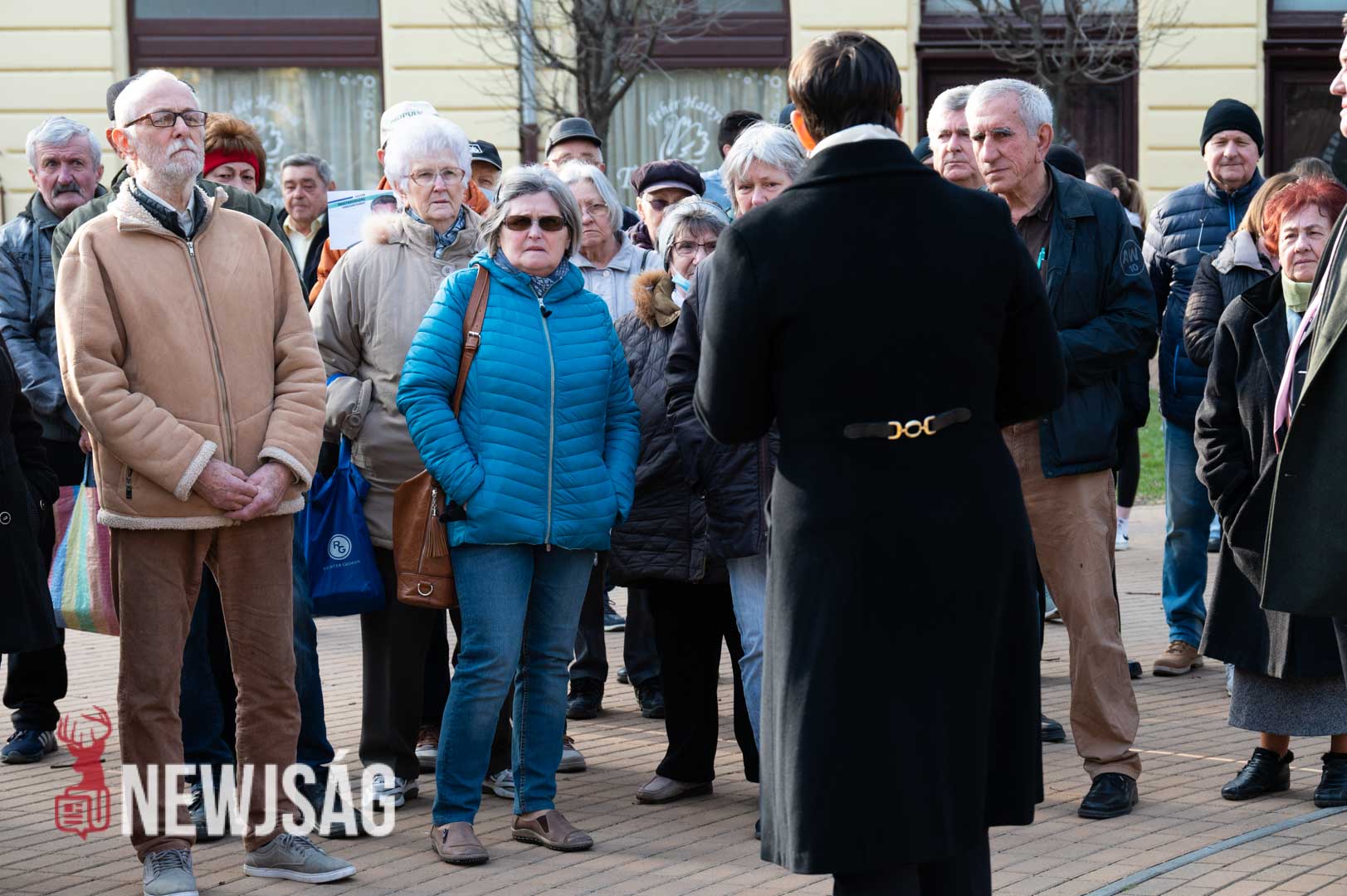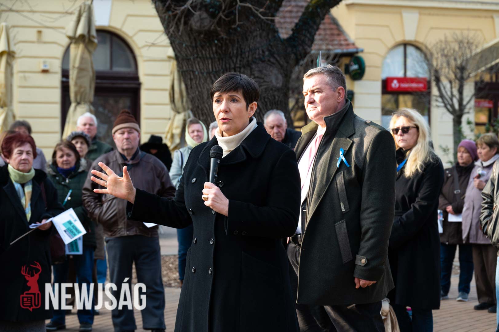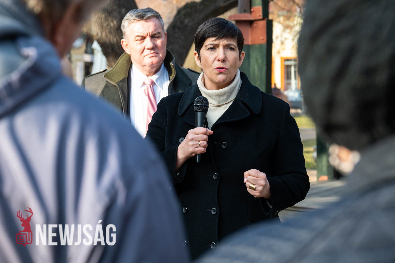 “Április 3-án mi, magyarok, újra arról fogunk dönteni, amiről már döntöttünk, és Szent István óta újra és újra döntenünk kell, hogy hová akarunk tartozni”, mondta Dobrev Klára a körülötte állóknak, miután a magát néhány mondatban bemutató dr. Kondé Gábortól megkapta a szót.