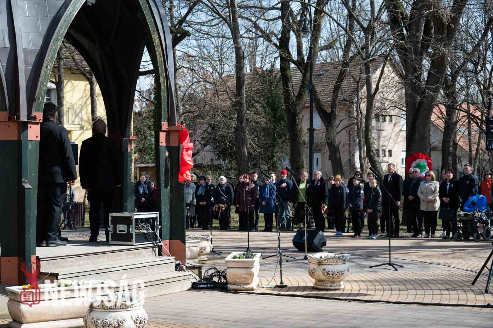 Az ünnepi megemlékezés koszorúzással zárult, minek aláfestéseként a Szarvasi Férfikar szavalt, énekelt.