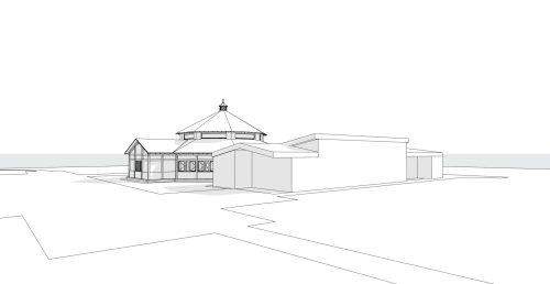 Külső megjelenésében vissza fog köszönni a korábbi nyolcszögletű épület, de annak még lesznek könnyűszerkezetes, nyeregtetős folyományai. Jól fog kinézni.