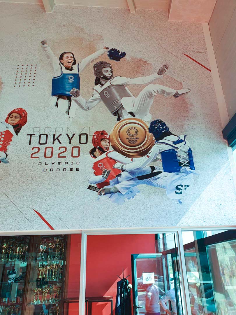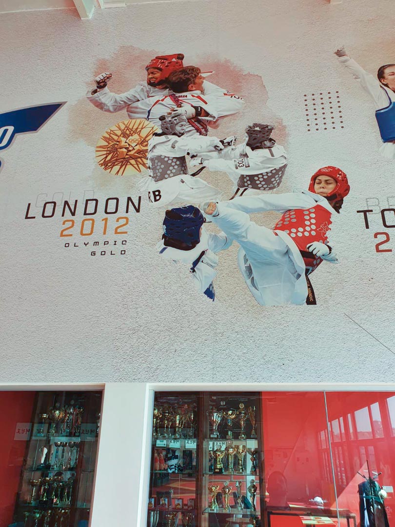 Az ajtón belépve egy modern, ízlésesen kialakított fogadótérbe jut az ember, ahol a csapat legfontosabb trófeái találhatók, a vitrin közepén a négy olimpiai éremmel. Itt kényelmes fotelekben kávé, tea mellett tekinthető meg egy hatalmas üvegfalon keresztül az edzés, ami 400 négyzetméter nettó alapterületű küzdőtéren folyik. Bábuk, rúgócélpontok, futógépek segítik a munkát, a falakon motiváló dekoráció az olimpiai érmesek montázsaival.