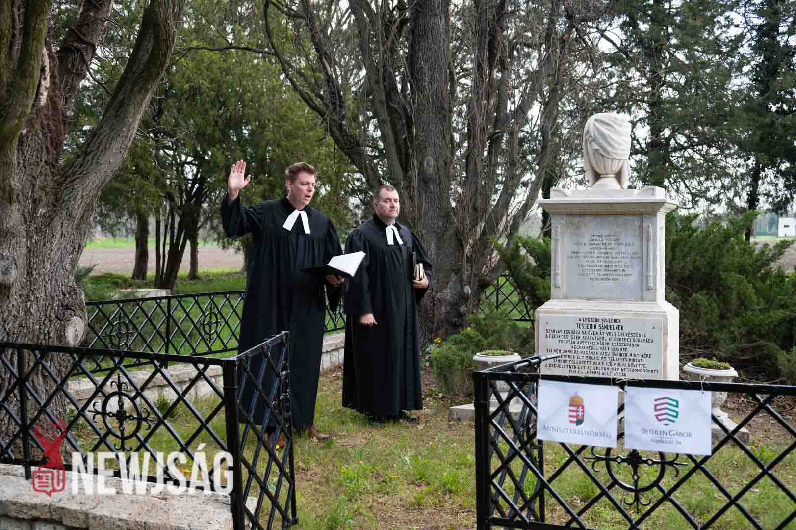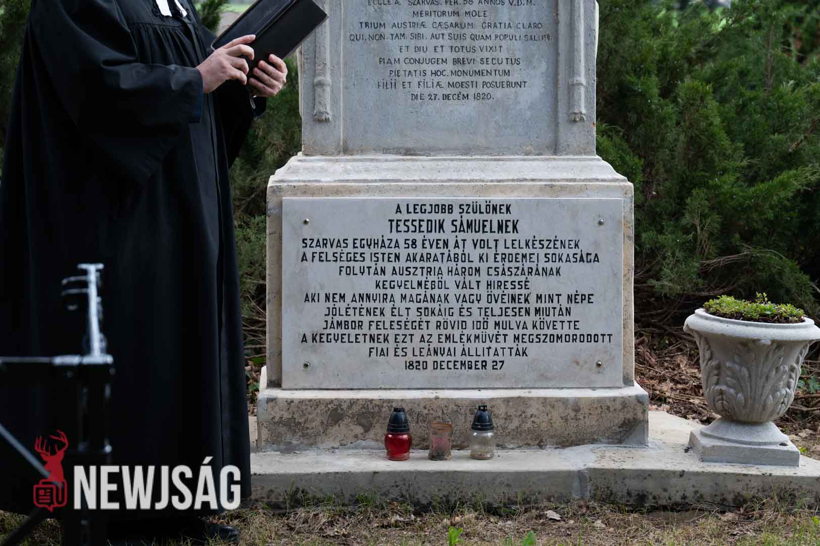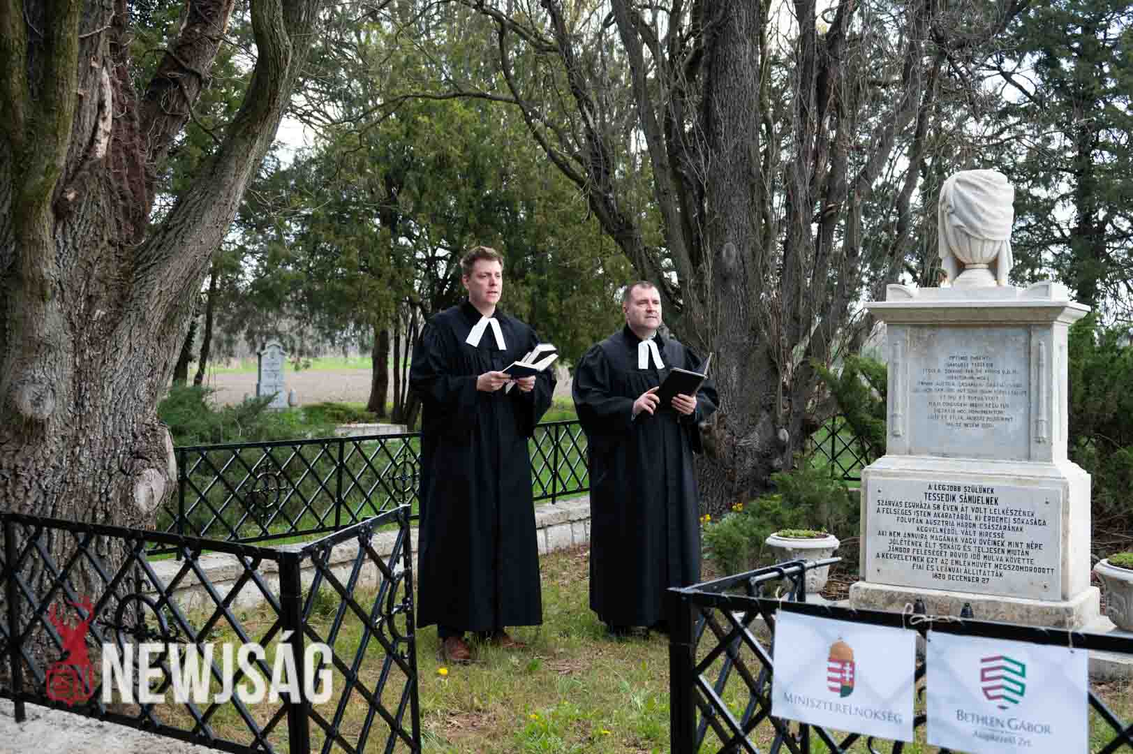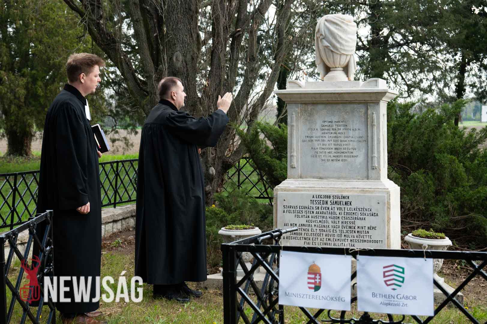 A szlovák önkormányzat elnöke két nyelven történt köszöntője után felkérte Lázár Zsolt evangélikus esperest, illetve Zahorecz Pál lelkészt, hogy szenteljék fel nagy elődjük sírhelyét.