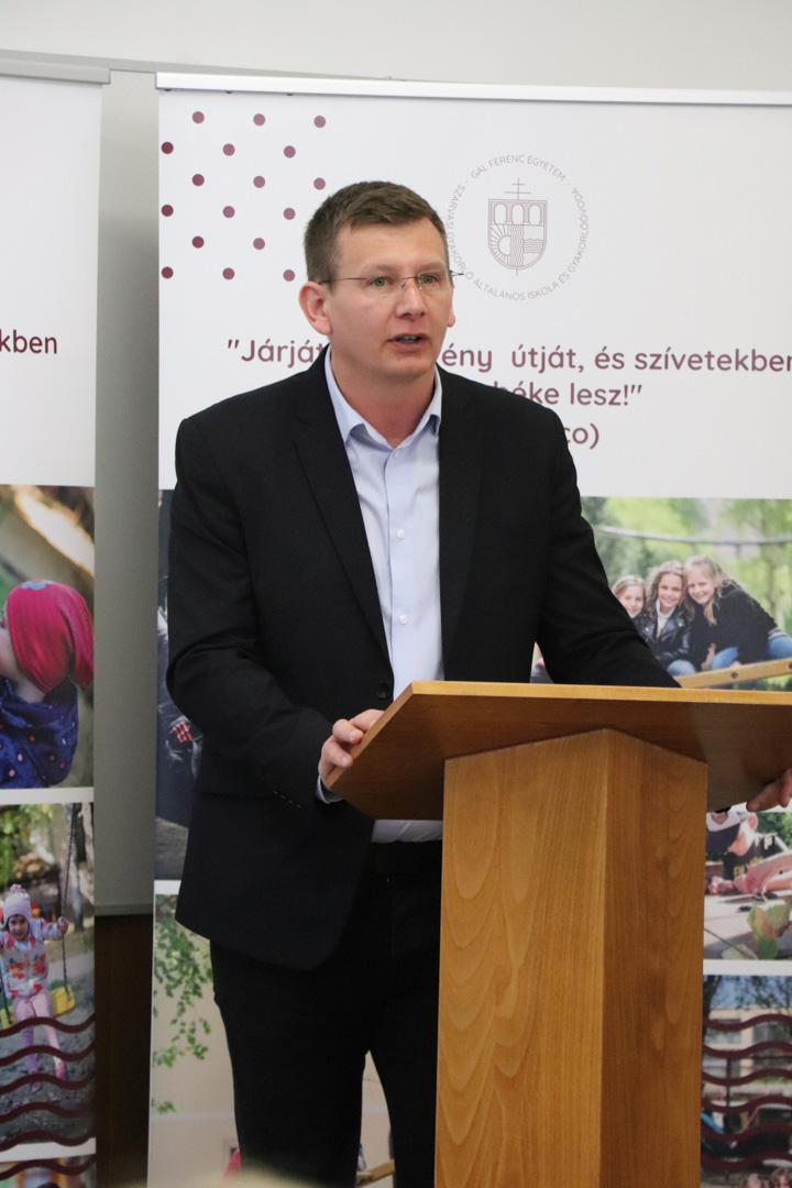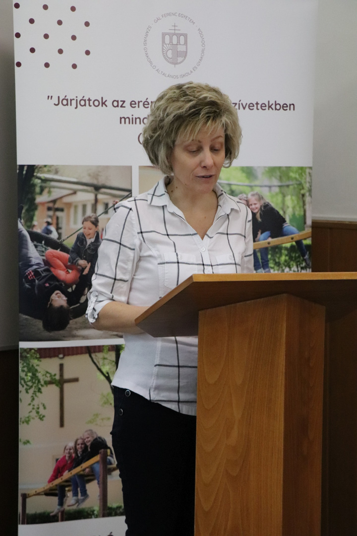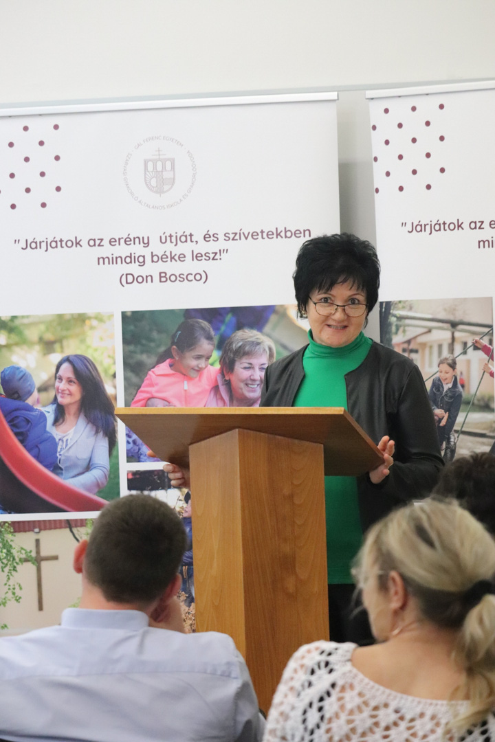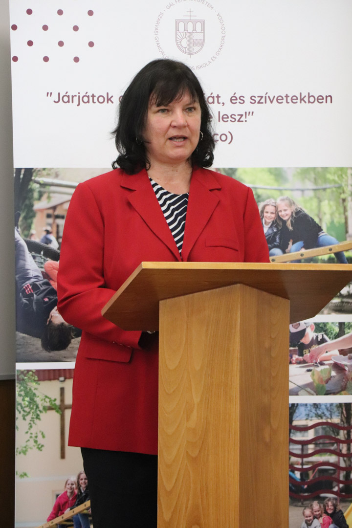 A Gyakorlóintézmény vendégeit az intézmény felkérésére Dr. Katona Krisztina dékán, főiskolai tanár köszöntötte. A köszöntő szavakat a Gyakorlóintézmény Alma csoportos óvodásainak szavalata előzte meg, megnyitva a programot. Bíró Gyula igazgató, c.e.docens, a GFE Nevelés- és Társadalomtudományi Intézetének oktatója programmegnyitójában összefoglalta a szarvasi pedagógusképzés korát megelőző pedagógiai törekvéseit a területen, azoknak a kiváló egykori oktatóknak és szakvezető óvodapedagógusoknak és tanítóknak a megidézésével, akik szemléletükkel, elhivatottságukkal, és programalkotó készségükkel formálták az intézmény gyermek és pedagógusjelölt hallgatói közösségét. Ennek a területnek az országosan is elismert és ismert szakmai műhelye jelenleg a Gyakorlóintézmény és az általa működtetett Gyermekkert Regionális Módszertani Oktatóközpont. Kiemelte a gyermeki szemlélet és a példaadás feladatát, és elismerését fogalmazta meg Békés megye „zöld intézményei” felé, bíztatva őket a jó gyakorlatok kölcsönös megosztására, a megyei hálózatosodásra, amelyhez az intézmény változatlanul támogatással lesz a jövőben is.
