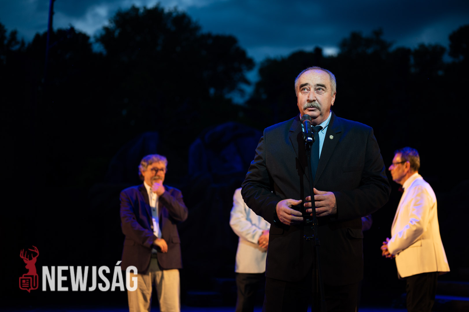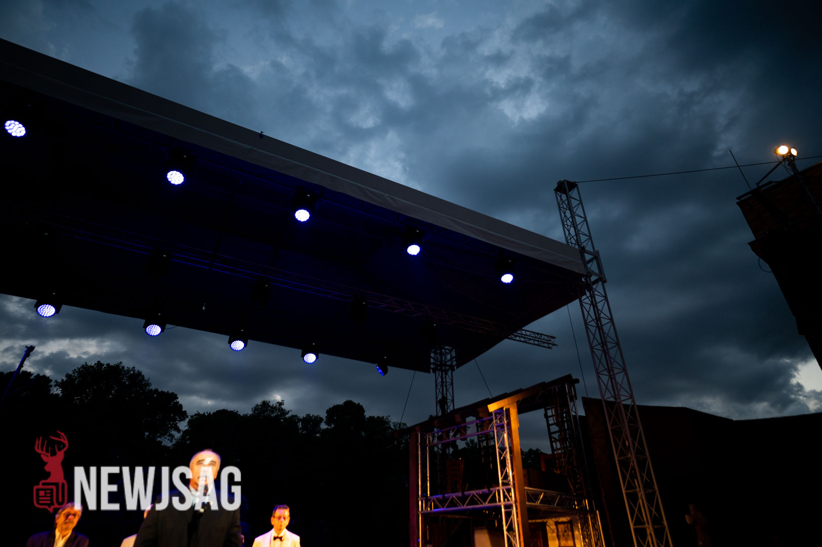 Az évadnyitó köszöntők után Békéscsabai Jókai Színház Trianon című darabja következett, aminek a hátterét – mint távoli hegycsúcsokat – fekete felhők adták. Aztán ahogy a távoli hegyeinket, úgy ezeket a felhőket is elfújta a szél.