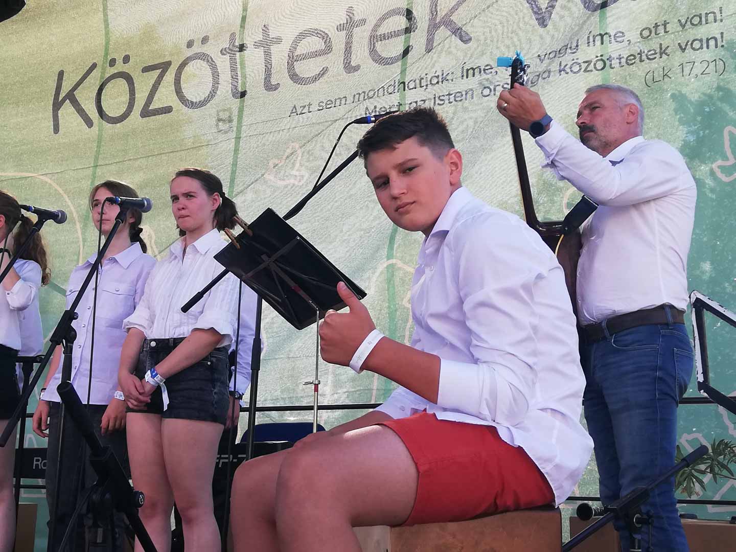Megtisztelő volt, hogy a nyitó áhítaton a mi csapatunk működött közre Huszák Zsolt mentor és Fonád Zoltán vezetésével. A zenekar – Weisz Tímea, Garai Hajnal, Tóth Sára, Molnár Tamara, Lauday Izabella, Molnár Lilla, Juhász Gergő, Zima Dávid és Gyetvai Csongor – 5 éneket adott elő két gitárral, illetve zongorakísérettel: Ímé mily jó, gyönyörűséges, Tégy eggyé Urunk, Indulunk, érkezünk, Mélységeknek mélységéből, Szívem csendben az Úrra figyel. Mindegyik nagyon szépen szólt a színpadon, a közönség nagy tapssal jutalmazta előadásukat.