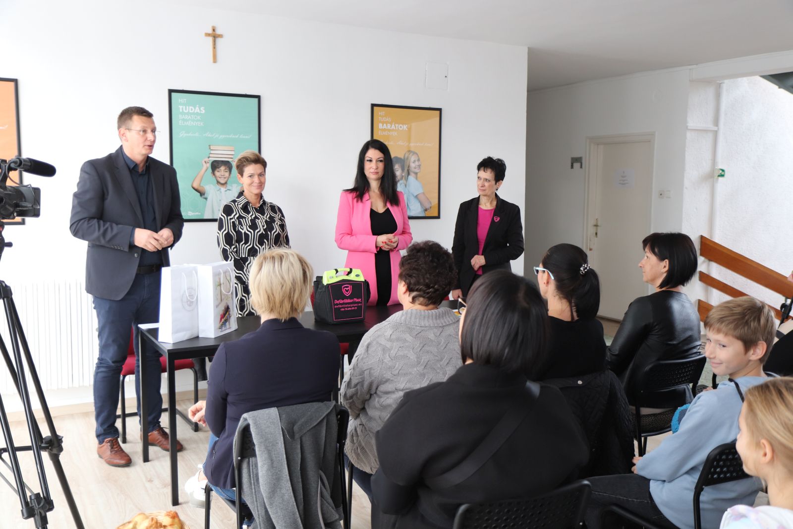 “Példaértékű közösségi összefogással, mintegy két hét leforgása alatt sikerült annak a defibrillátor készüléknek a vételárát összegyűjtenie a Gál Ferenc Egyetem Szarvasi Gyakorlóintézményének és a Bóbita Alapítványának, ami a biztonságosabb intézményhasználatot teszi lehetővé” – mondta Bíró Gyula igazgató, az egyetem oktatója a 2022. október 12-én megtartott sajtónyilvános átadó alkalmon a megjelent támogatóknak, és a sajtó képviselőinek.