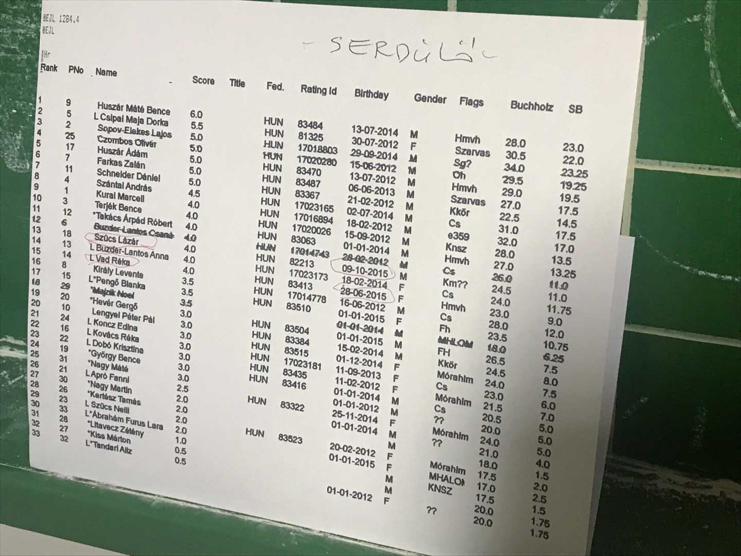 Ugyanebben a csoportban Csipai Maja Dorka 5,5 ponttal megnyerte a lányok versenyét.