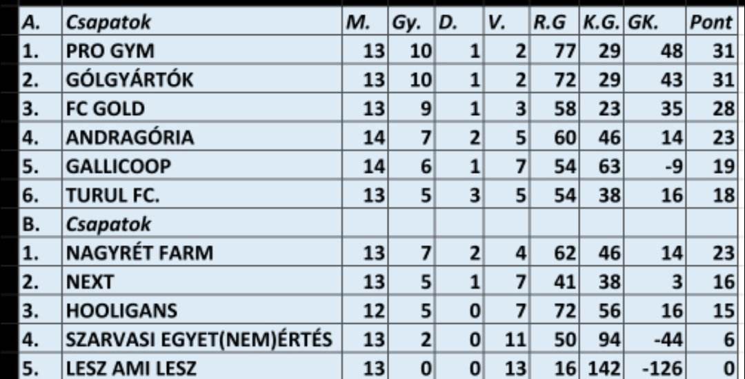 Góllövőlista: 20: Takács(Gólgyártók), 18: Radics(Gólgyártók)