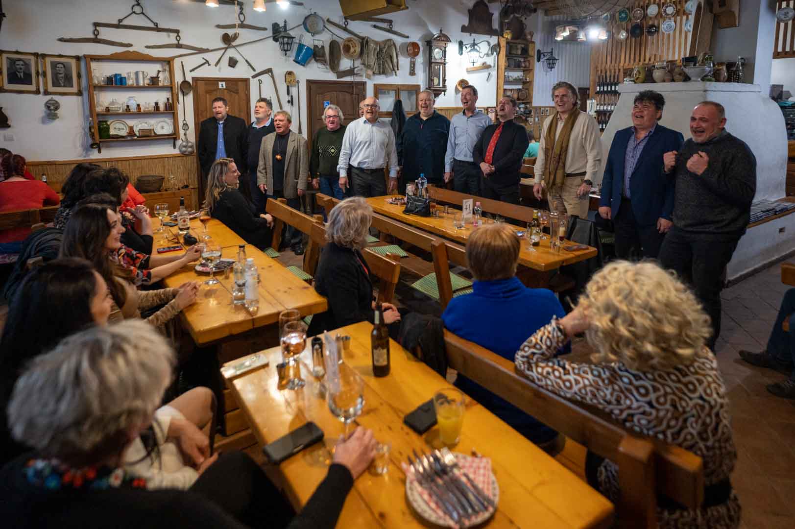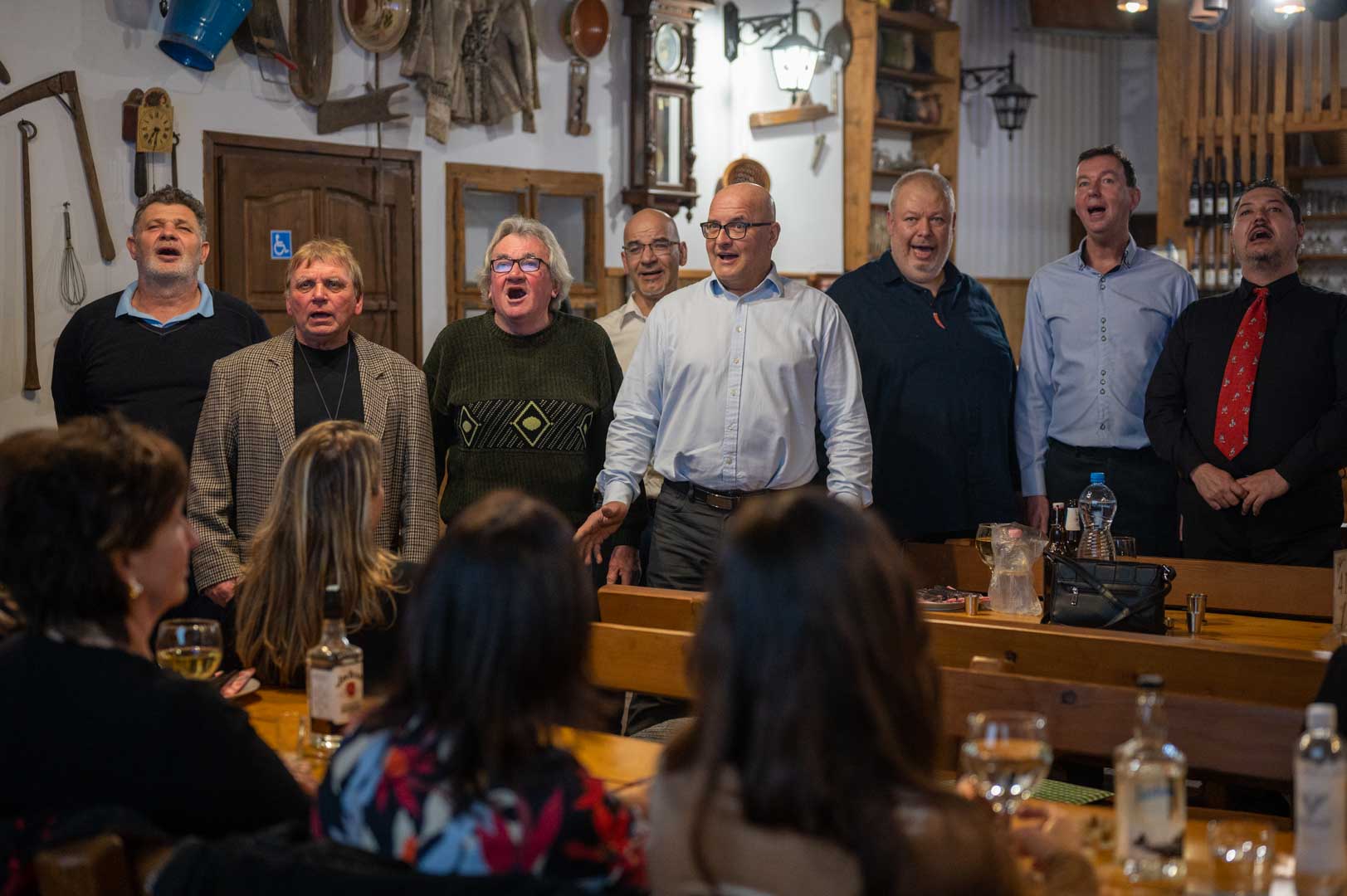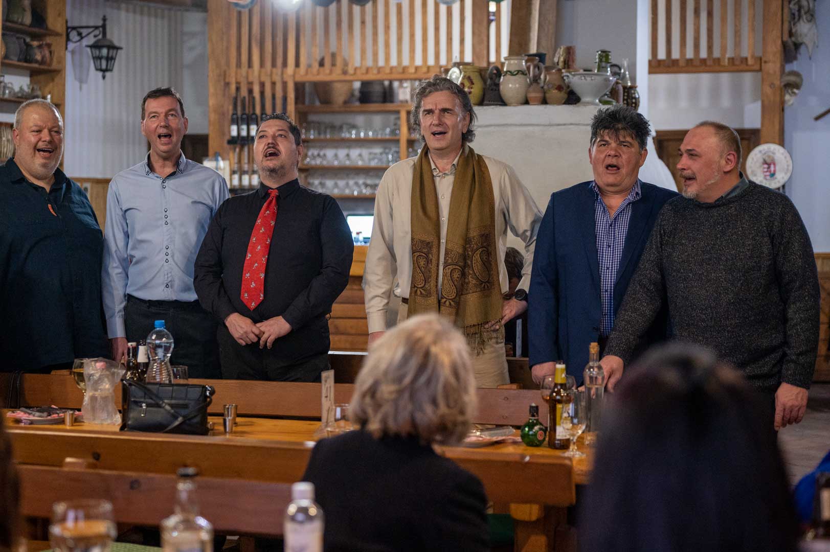 Vacsora előtt a férfiak karba rendeződtek, hogy néhány dallal kedveskedjenek párjaiknak, illetve a társasághoz nem tartozó vendégeknek, akik a hölgyekhez hasonlóan tapssal köszönték meg a vacsorához szóló nótát.
