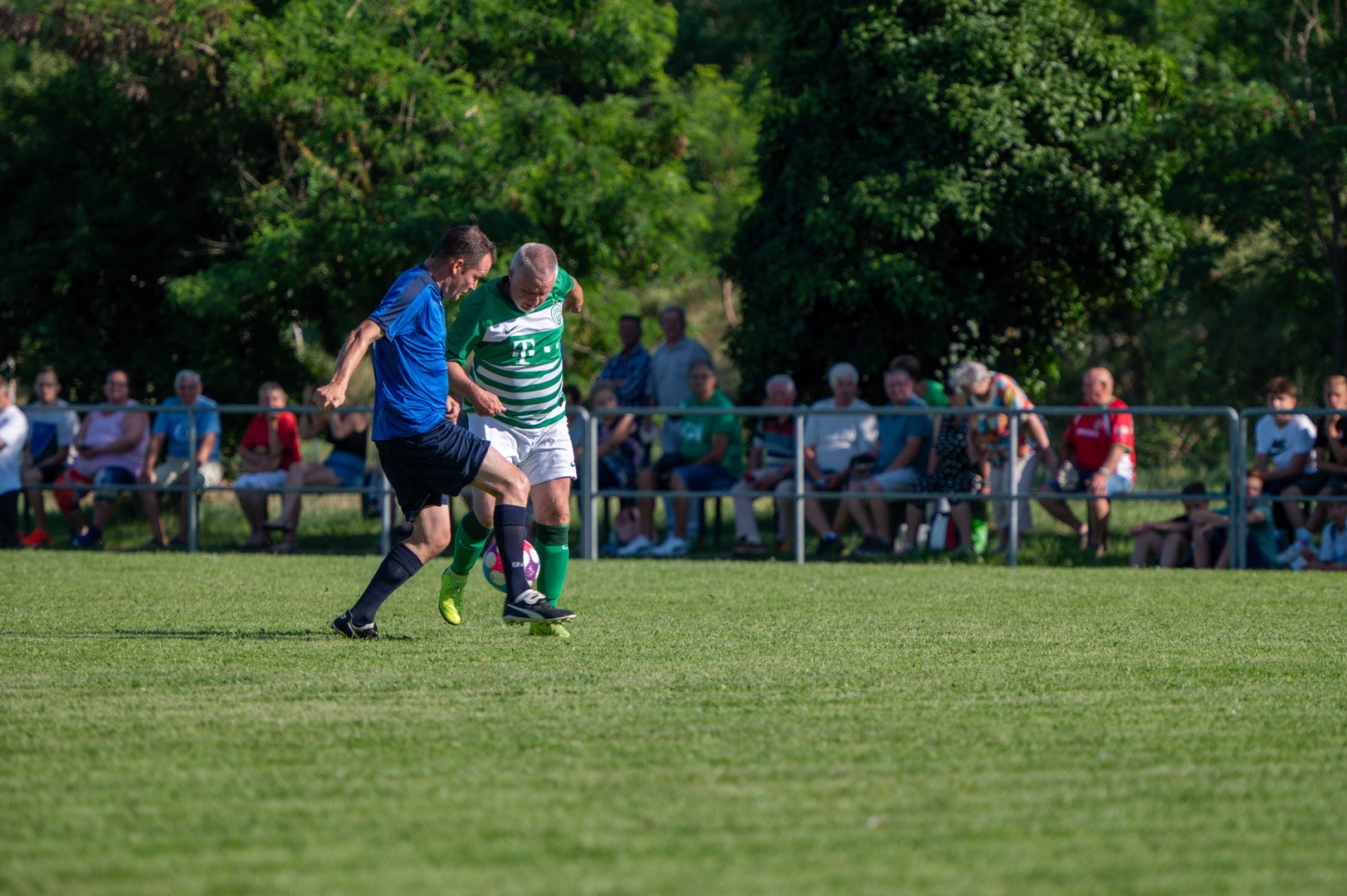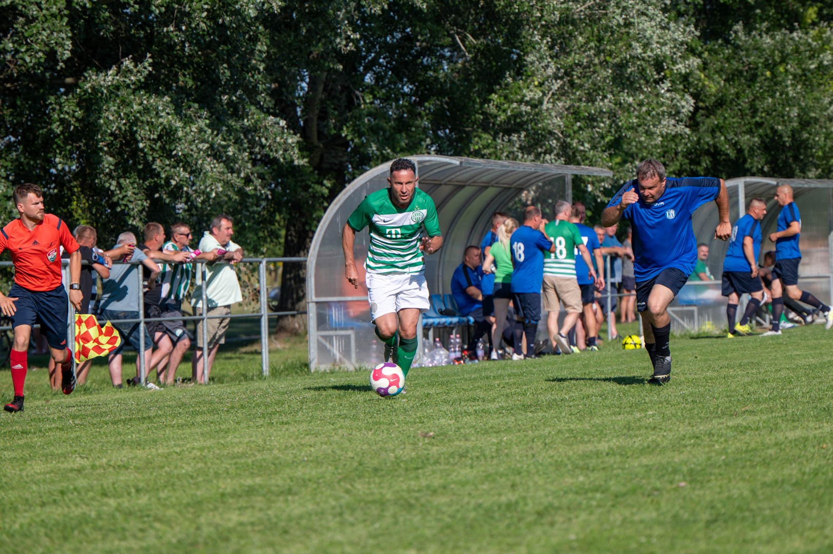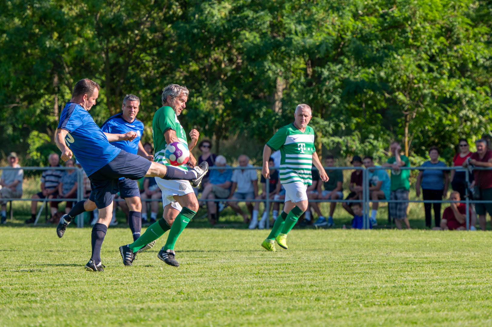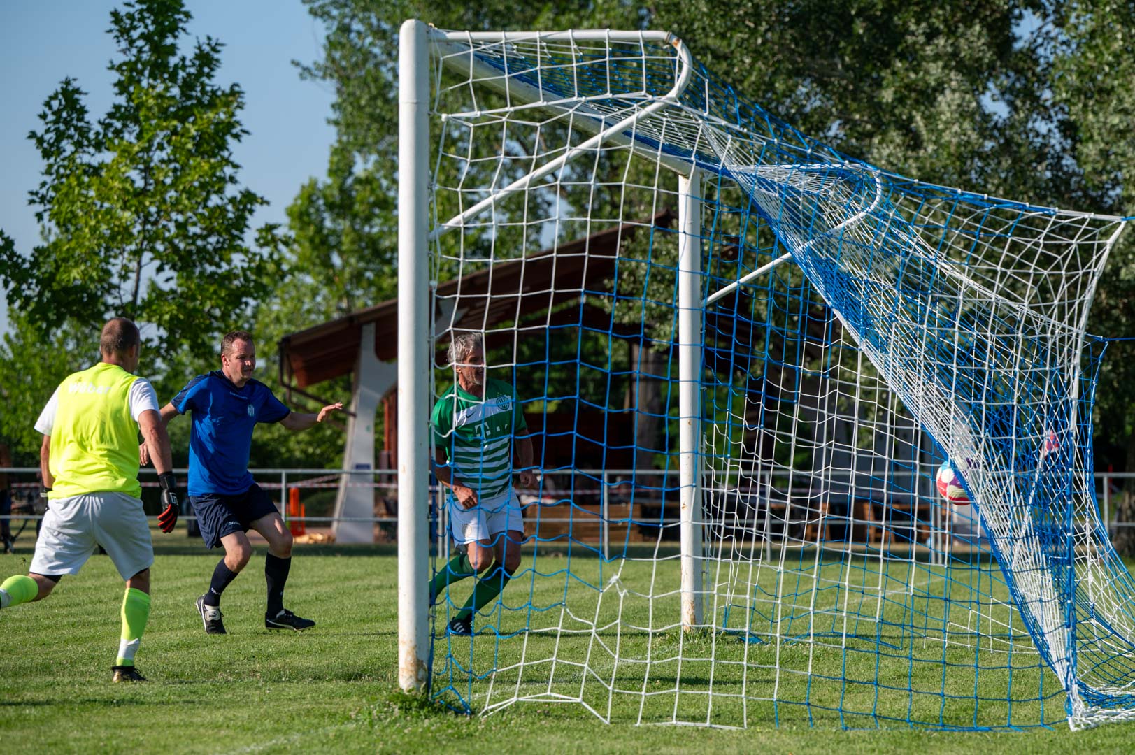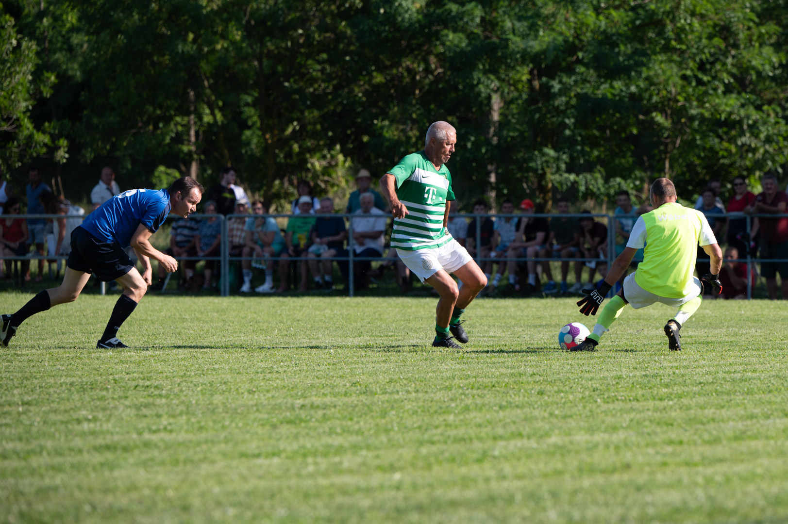 A Nagy Gábor, Bánki József, Keller József, Lisztes Krisztián, Zoran Kuntics, Nyilas Elek, Szenes Sándor, Lászka Balázs, Sóky Zoltán, Bőke Zoltán, Bőke Roland, Rázsó Sándor és Balog Zoltán által alkotott Zöld Sasok kétszer 30 perces sportszerű csata végén 5–1-re múlták felül a 19 játékosból (Wéber, Ambrus Z., Boros, Horváth, Tábori, Farkas P., Szécsi, Juhász Ambrus A., ifj. Virág I., Csernus, Koppányi, Miloszrdni, Radics, Stefán, Bakró, Szín, Rusz Z., Kozák) összegyúrt alkalmi szentandrási együttest. A hőségben kitikkadt játékosok a „harmadik félidőt” jelentő ünnepi vacsora során már közös egységet alkotva hallgatták, amint Hévizi Róbert helytörténész tartalmas előadás keretében eleveníti fel a Hunyadi 90 éves történelmét, majd Farkas Péter egyesületi elnök köszöntőjét. Az ízletes étkek elfogyasztása után lehetőség nyílott elbeszélgetni a díszvendégekkel, akik számos „kulisszatitkot” is feltártak.