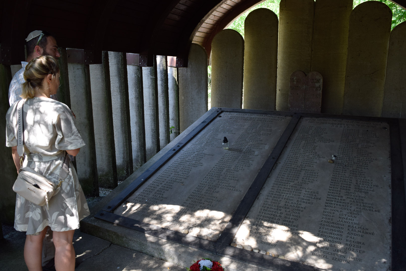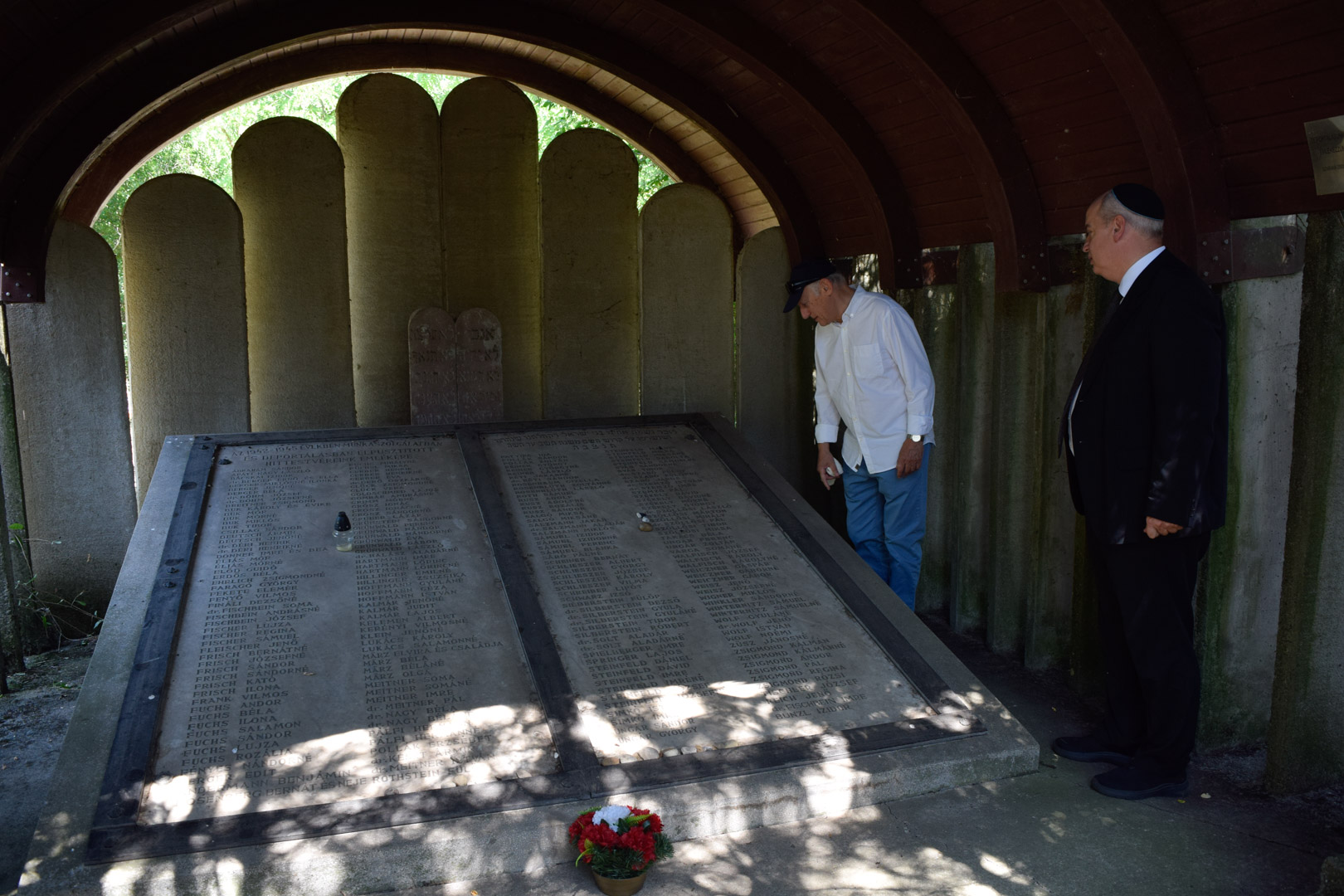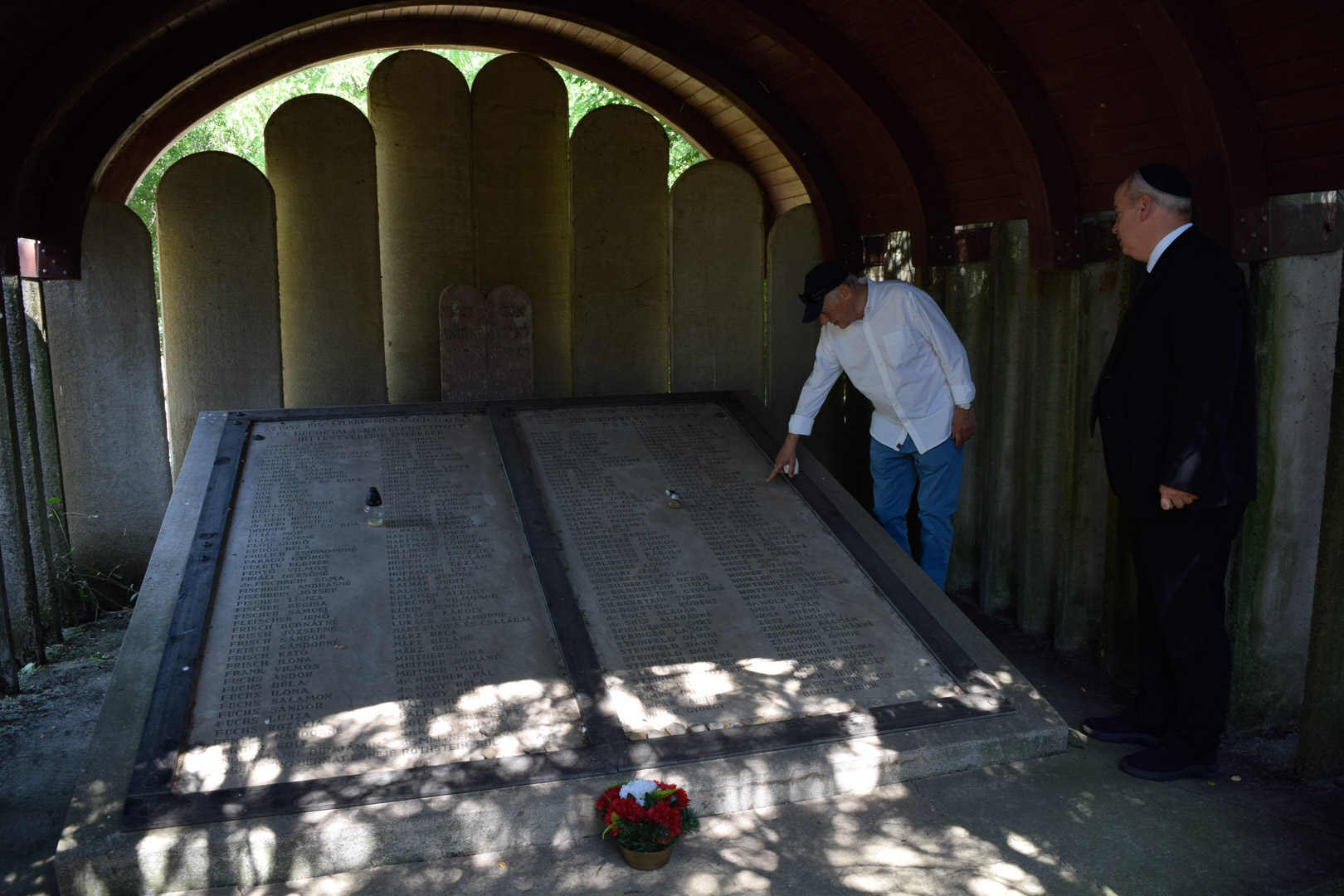A héberül elénekelt ima után szokás szerint elhelyezték az emlékműnél az emlékezés kavicsait.