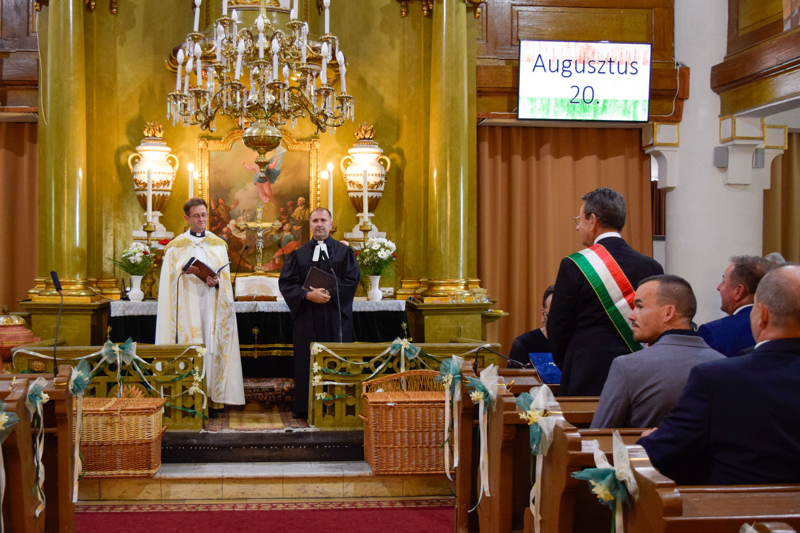 A Cervinus Teátrum művészei, Kiss Viktória és Timkó János két dallal és egy verssel köszöntötték az államalapítás ünnepét. Kiss Viktória egy régi Generál slágert – Vigyázz a madárra – Timkó János pedig az Álomkeringő című filmben Sárdy János által sikerre vitt Adj, uram Isten c. dalt adta elő. A két dal között Reményik Sándor mindennapi kenyér c. versét hallhatta a közönség a két színész tolmácsolásában. Az ünnepség a Himnusz közös eléneklésével zárult, s kifelé menet minden résztvevő egy-egy megszentelt, megáldott kiscipót kapott ajándékba.