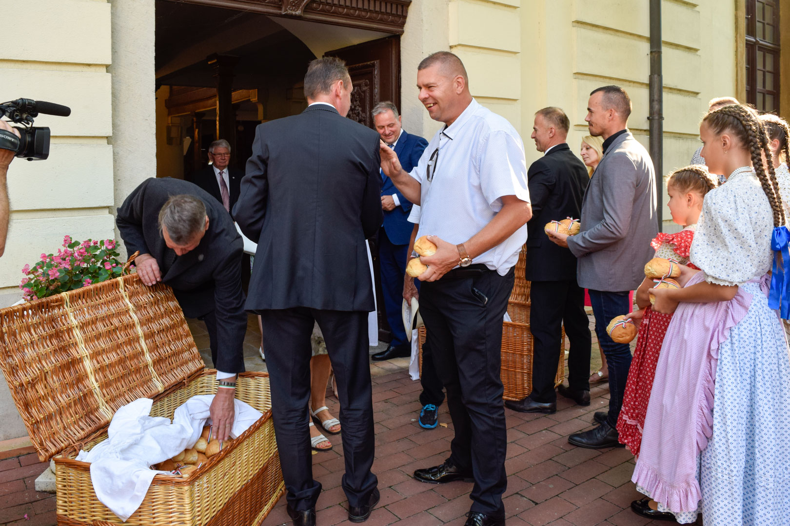 Az ünnep szakrális része után Csasztvan András, a Cervinus Teátrum igazgatója köszöntötte a vendégeket, köztük Dankó Béla országgyűlési képviselőt, Babák Mihály polgármestert, Gaál Roland járási hivatalvezetőt, a megyei és a helyi önkormányzat képviselőit. Szarvas város polgármestere ezen az ünnepen is akkor és most párhuzamot vont a történelmi cselekedetek és napjaink kormányzati törekvései között. Szent Istvánnak tulajdonított szándékokat – hazát adni, biztonságot és békét teremteni – majd napjaink feladataként említette a függetlenség, a kultúra, a nyelv őrzését, gyarapodást és jólétet biztosítani a magyaroknak.
