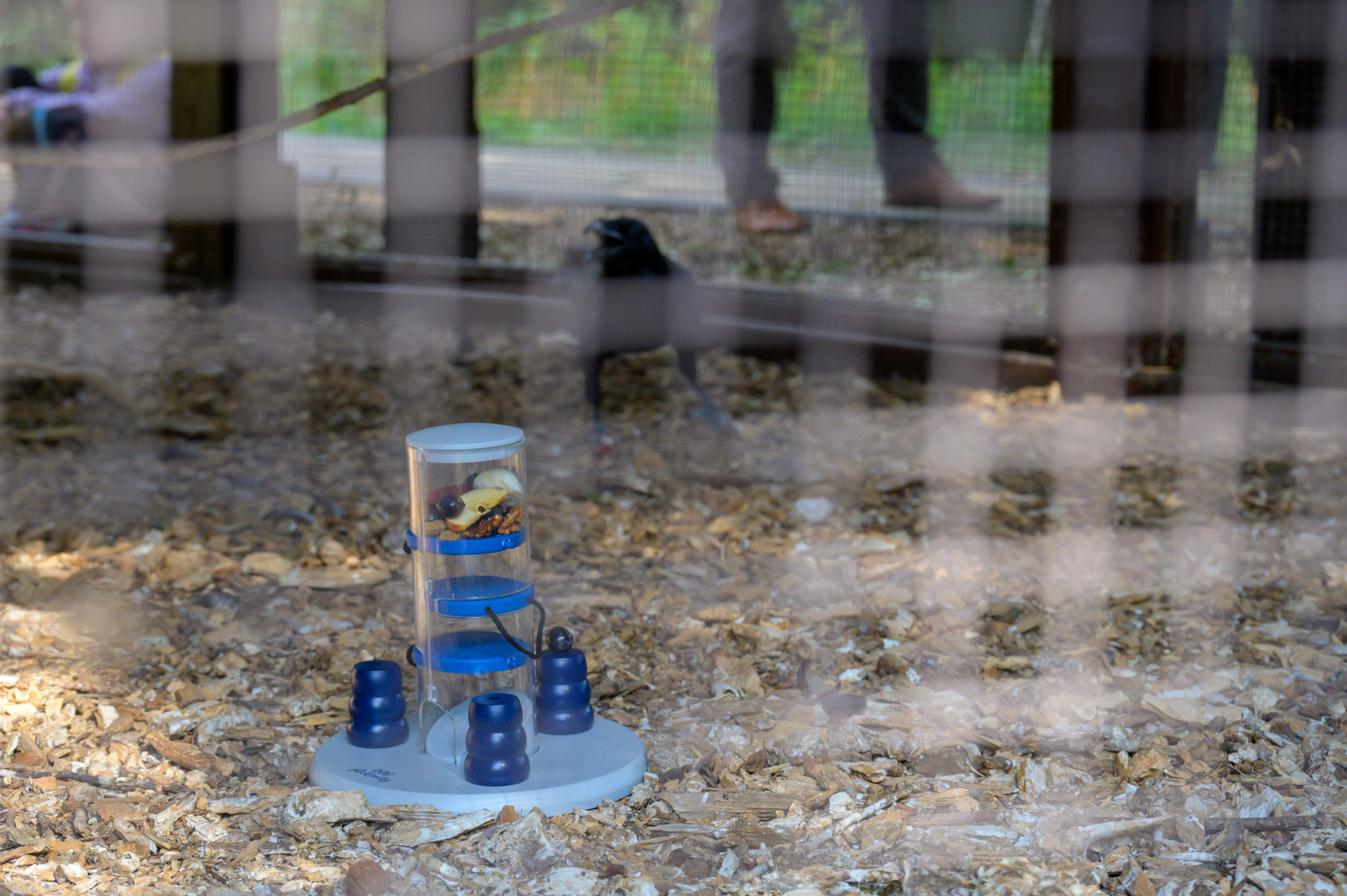 A sok várakozó tekintet elvonta a holló figyelmét a voilerébe tett logikai játékról, kíváncsian nézett vissza a körülötte álló benkás gyerekekre, de a nap hátralevő részében csak rávitte a kíváncsiság, hogy megvizsgálja az újdonságot.