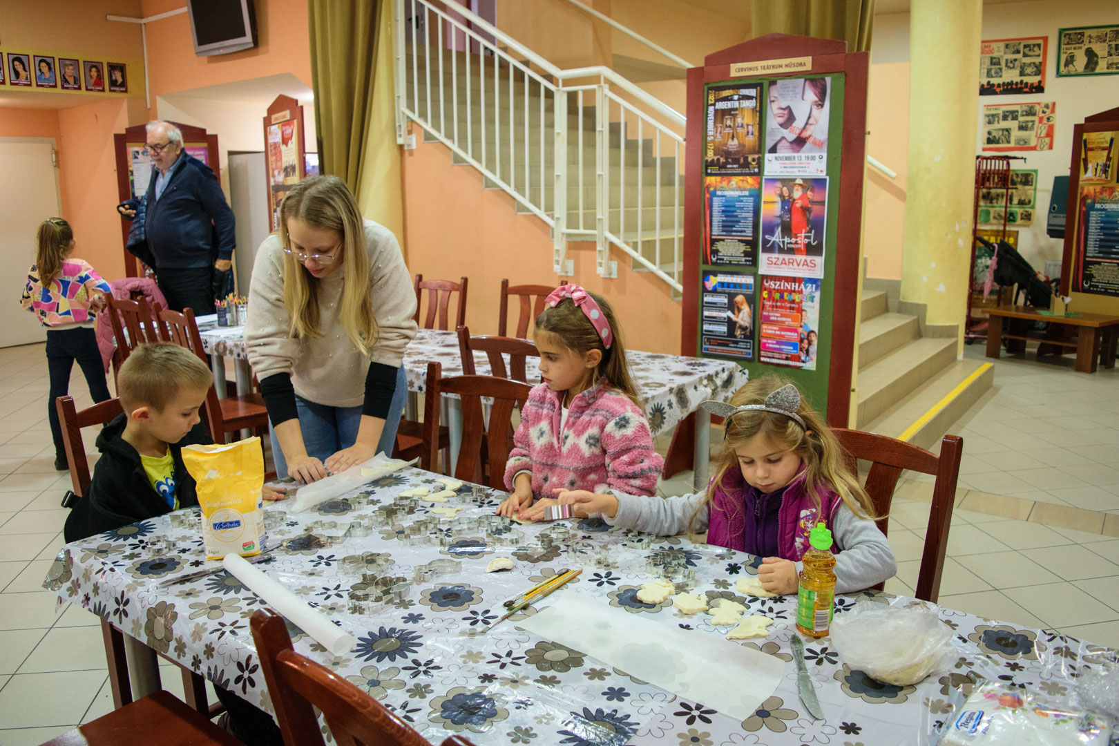 A Cervinus Teátrum hosszú évek hagyományát folytatta, amikor november 3-ra meghirdette őszi szünidei játszóházát. Tízórakor kinyitott a mesék birodalma. Az előtérben többféle kézműveskedést kipróbálhattak az érkezők, bemelegítés gyanánt. A kézműveskedést a szarvasi civil szervezetek vállalták magukra, amiért Tőkés-Szeljak Gabriella – aki kalauzolt minket a játszóházban – ezúton is köszönetét fejezi ki. Idén az volt az újdonság az őszi szünidős játszóházban, hogy a délelőttöt a legkisebbeknek ajánlották a szervezők, s délután volt a nagyobbaké.