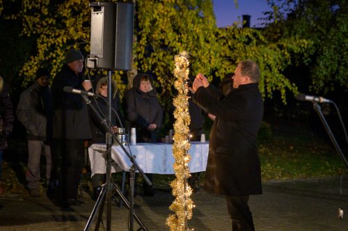 Az első gyertyát Kitajka Béláné, Edit néni, a Szent András-nap idei díjazottja gyújtotta meg, aki Benedek pápa szavait tolmácsolta: Az advent gyönyörű feladata, hogy mindannyiunkban felébressze a jóság emlékét, hogy ezzel utat nyisson a reménység felé.