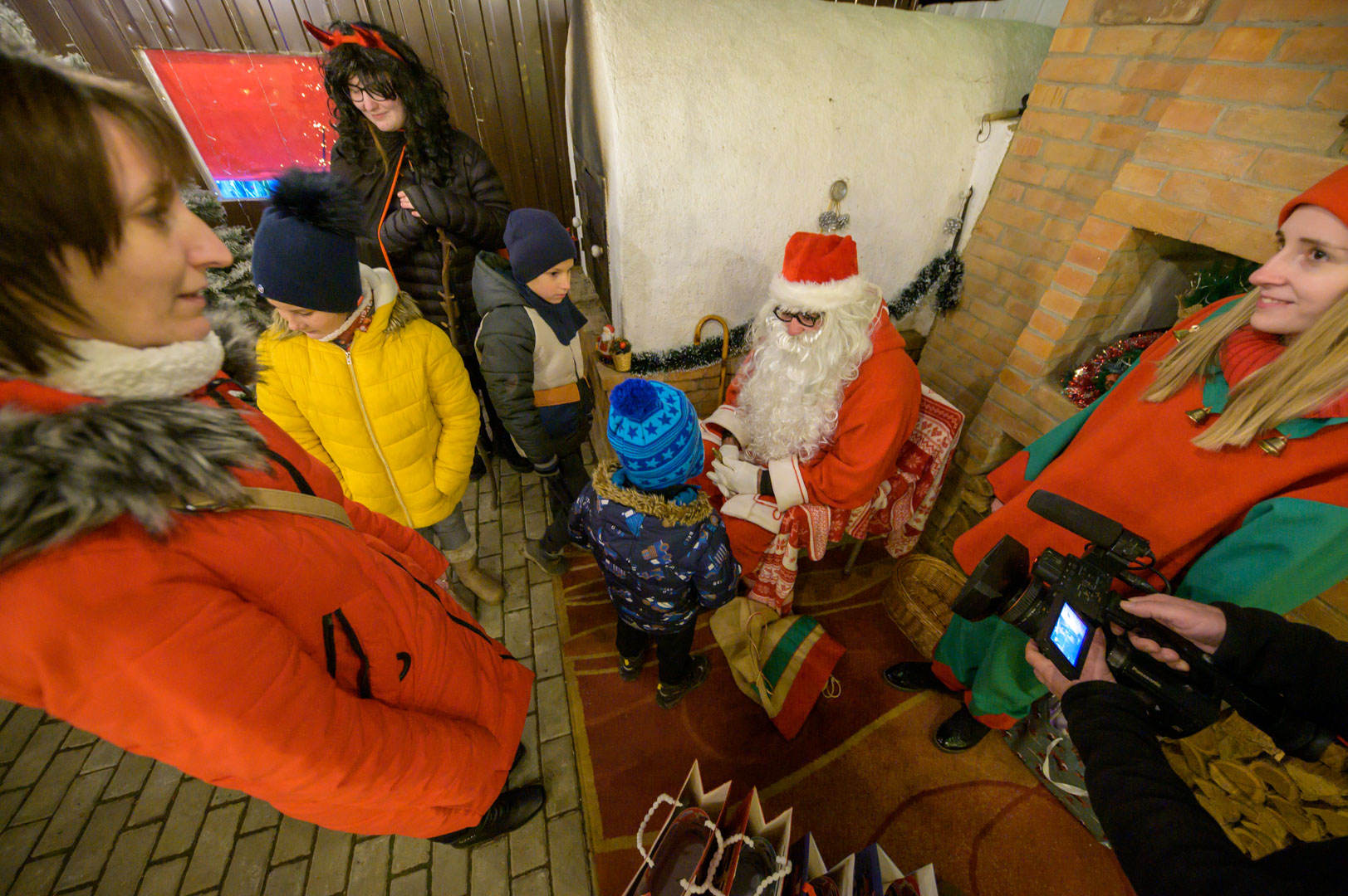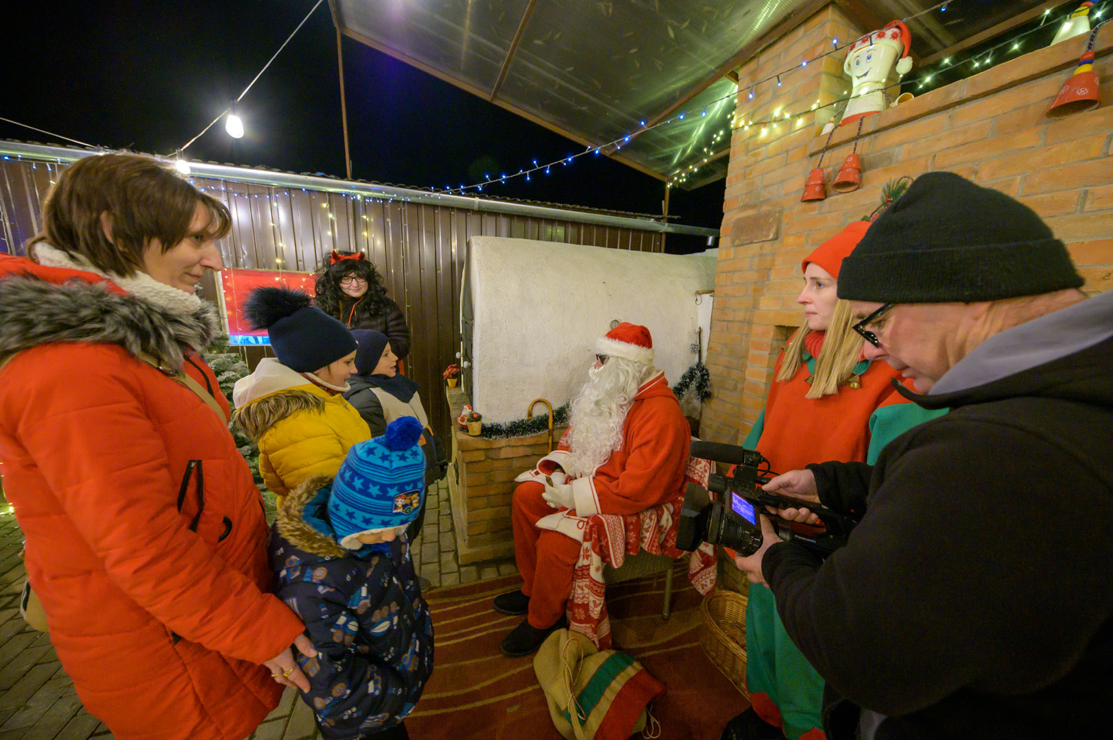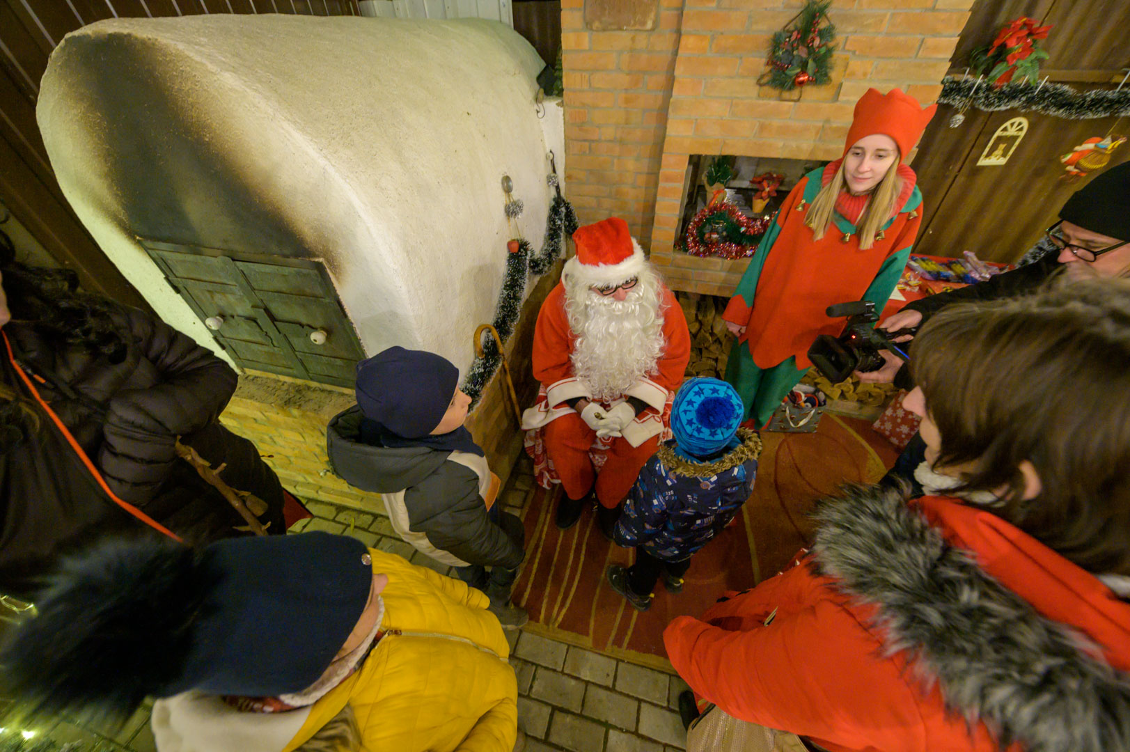 Az év e várva várt napján érkeztek is a csemeték a kemence mellett ülő pirosruhás elé. Negyven család 81 gyermeke jött el, hogy lássa a Lappföldről érkezett vendéget, de kíváncsiak inkább arra voltak, mit is rejt a zsákja. Senki sem ment üres kézzel haza. Az ajándékok és csomagok kiosztásában a vele érkező manó és krampusz is segített neki. Úgy néz ki, Lappföldet is elérte az, hogy egyenlő jogokat kell biztosítani mindkét nemnek minden munkakörhöz, mert feltűnt két Mikulás-tanuló hölgy is. Előttük azért még hosszú út áll, hogy ők rázhassák a csengőt, fejenként legalább 100 kilót fel kell szedniük.