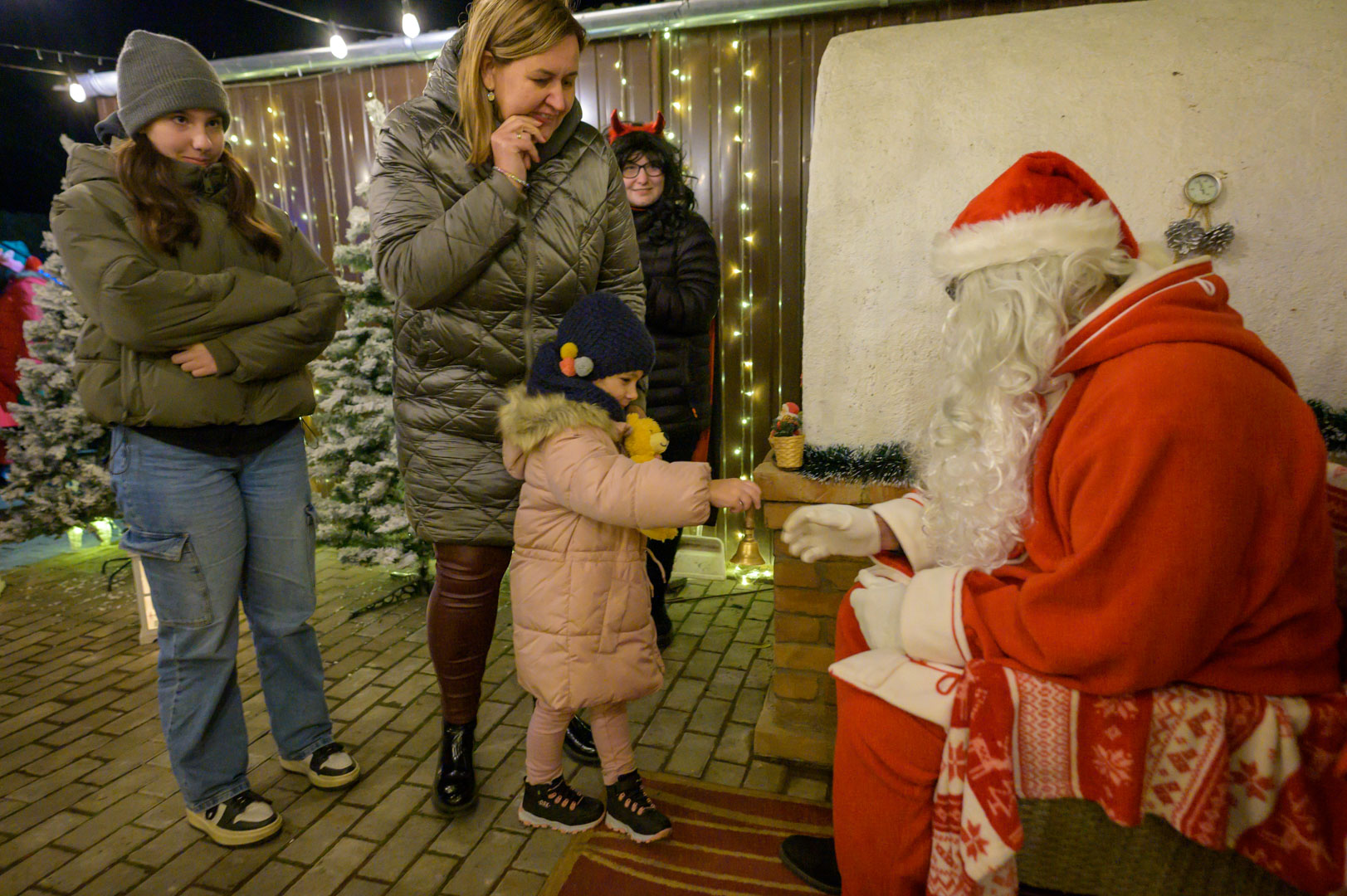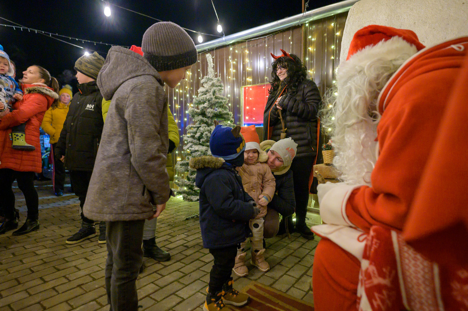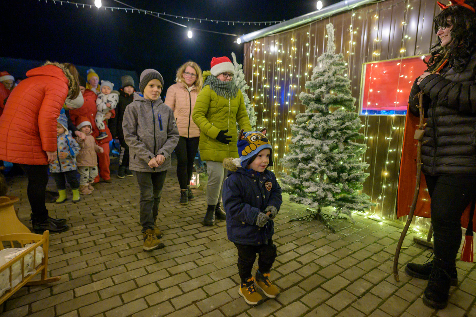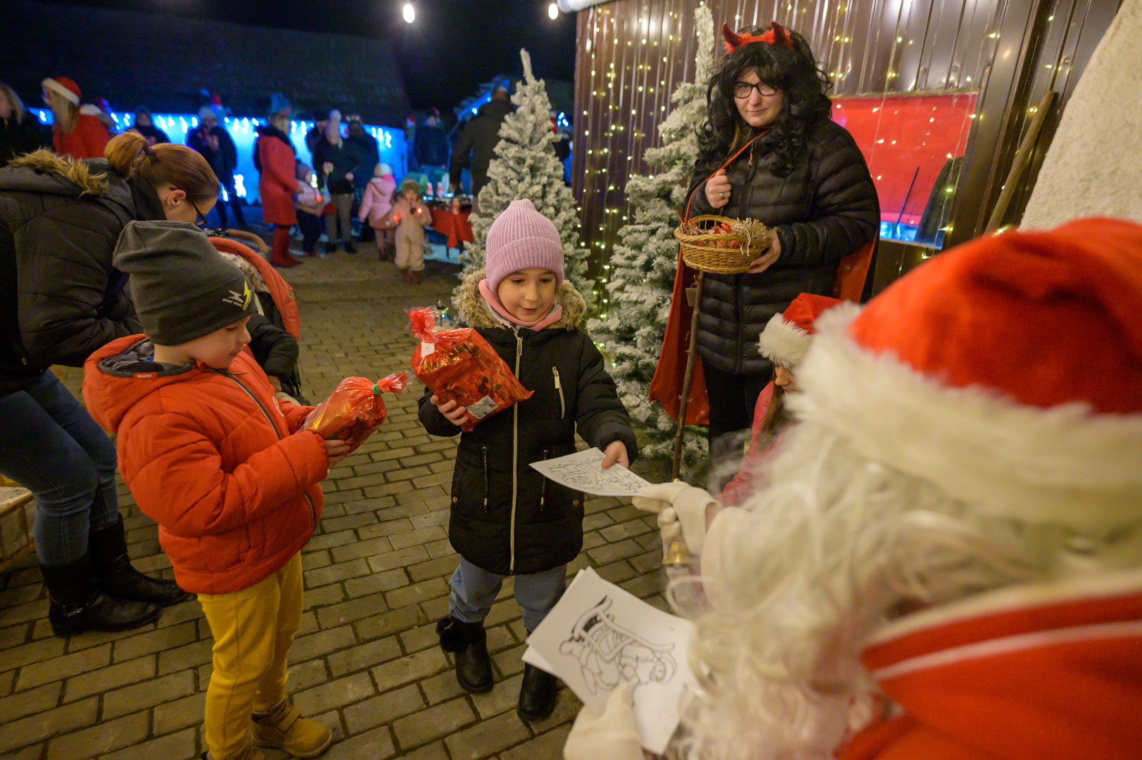 Az év e várva várt napján érkeztek is a csemeték a kemence mellett ülő pirosruhás elé. Negyven család 81 gyermeke jött el, hogy lássa a Lappföldről érkezett vendéget, de kíváncsiak inkább arra voltak, mit is rejt a zsákja. Senki sem ment üres kézzel haza. Az ajándékok és csomagok kiosztásában a vele érkező manó és krampusz is segített neki. Úgy néz ki, Lappföldet is elérte az, hogy egyenlő jogokat kell biztosítani mindkét nemnek minden munkakörhöz, mert feltűnt két Mikulás-tanuló hölgy is. Előttük azért még hosszú út áll, hogy ők rázhassák a csengőt, fejenként legalább 100 kilót fel kell szedniük.