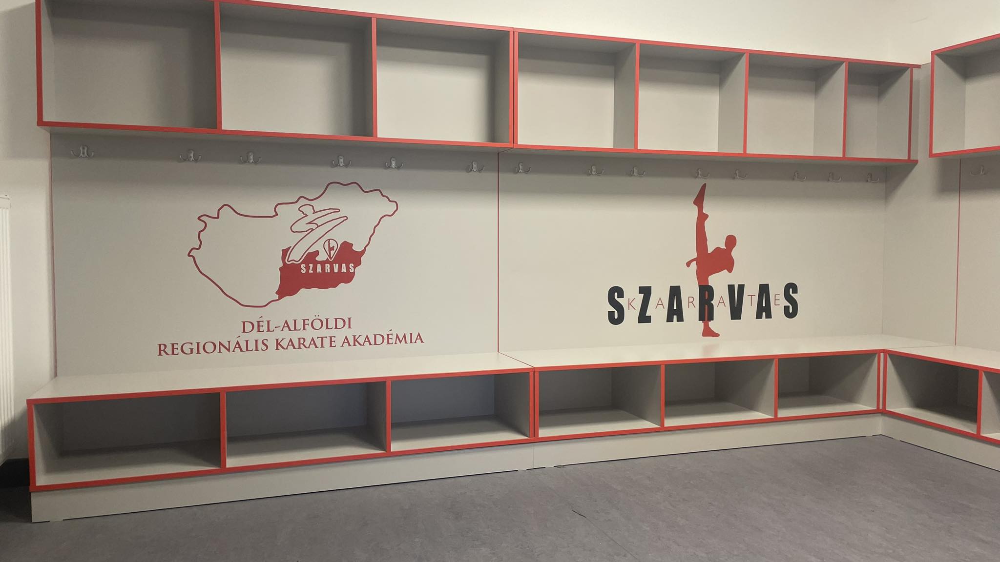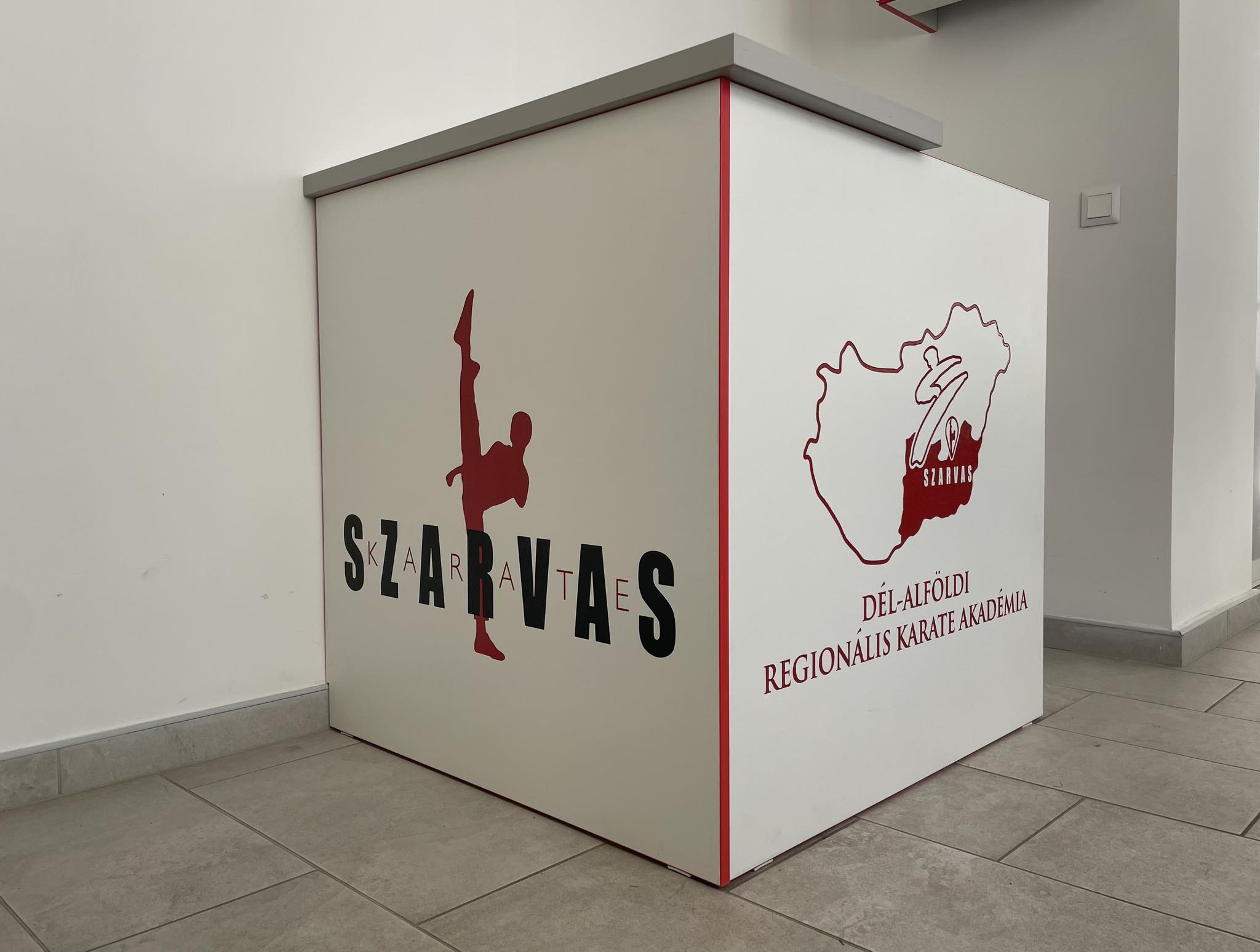 Célunk érdekében egyesületünk fogadópultjának, vitrinjeinek és öltözőszekrényeinek elkészítésével a szarvasi Kohut Bútor Kft.-t bíztuk meg. Már az első egyeztetés alkalmával kiderült hozzáértő kérdéseikből és javaslataikból szakmaiságuk, támogató felajánlásuknak köszönhetően pedig olyan saját logós egyedi bútorlapokból készülhettek el a berendezések, ami a Memoart Kft. belső dekorációival és a Villfény Kft. neonlfex betűivel összhangban igazán exkluzív megjelenést ad szeretett akadémiánknak álmainkat is felülmúlva.