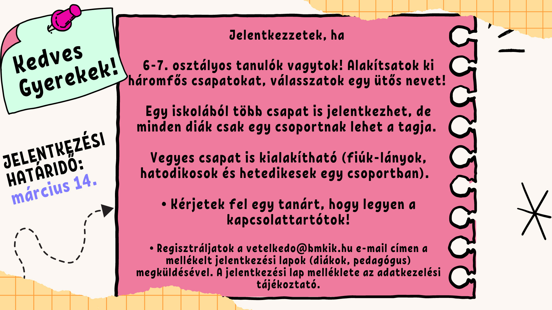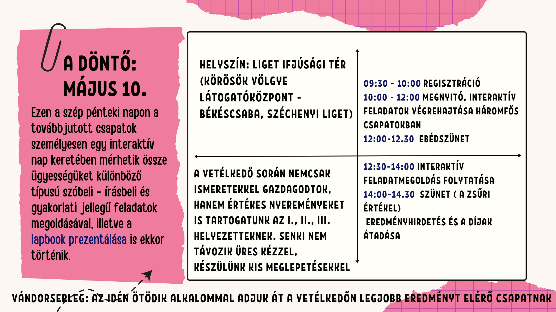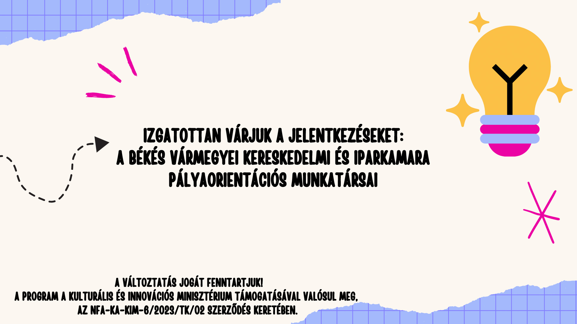 A hatodik-hetedik osztályos tanulóknak vetélkedőt hirdet a Békés Vármegyei Kereskedelmi és Iparkamara a Kulturális és Innovációs Minisztérium támogatásával. A programmal szeretnénk elérni, hogy a diákok önállóan is ismerkedjenek a szakmák világával, szélesítsék látókörüket és minél tájékozottabbak legyenek a szakmatanulási lehetőségek terén.