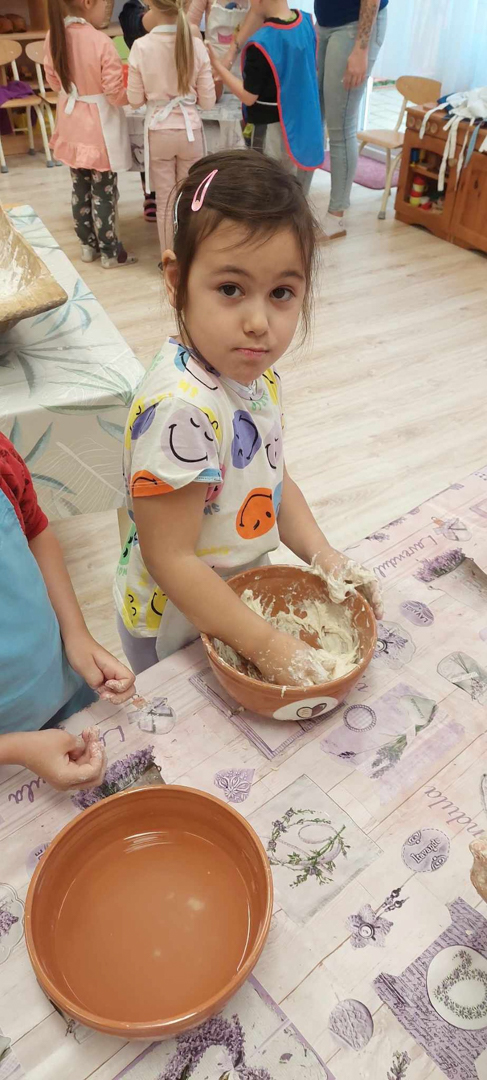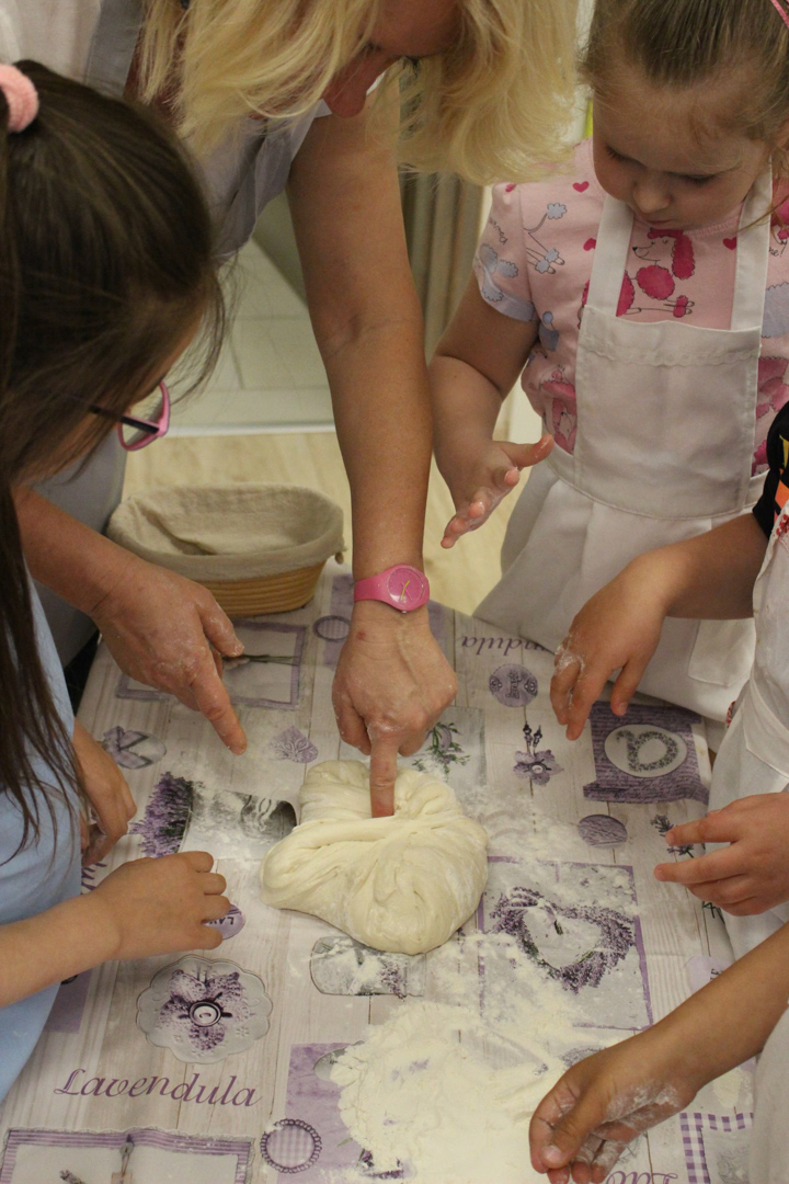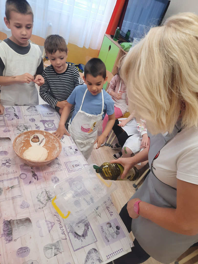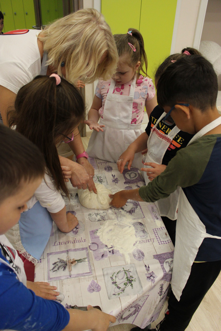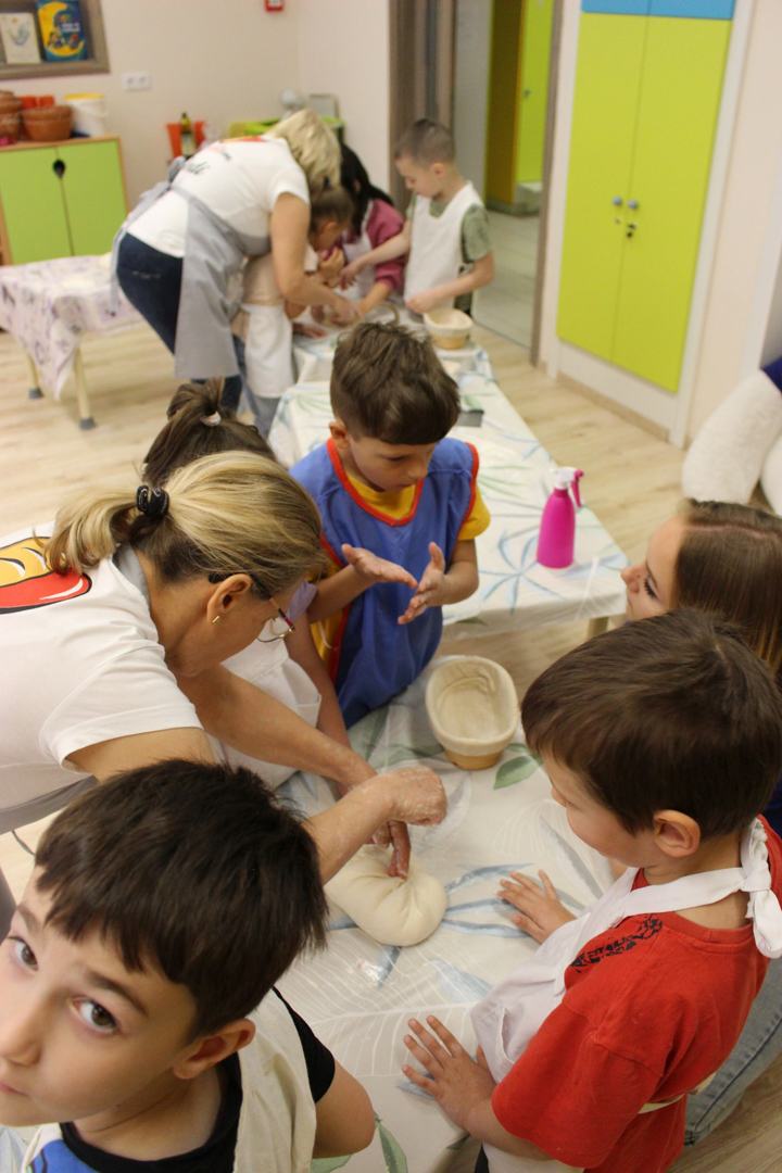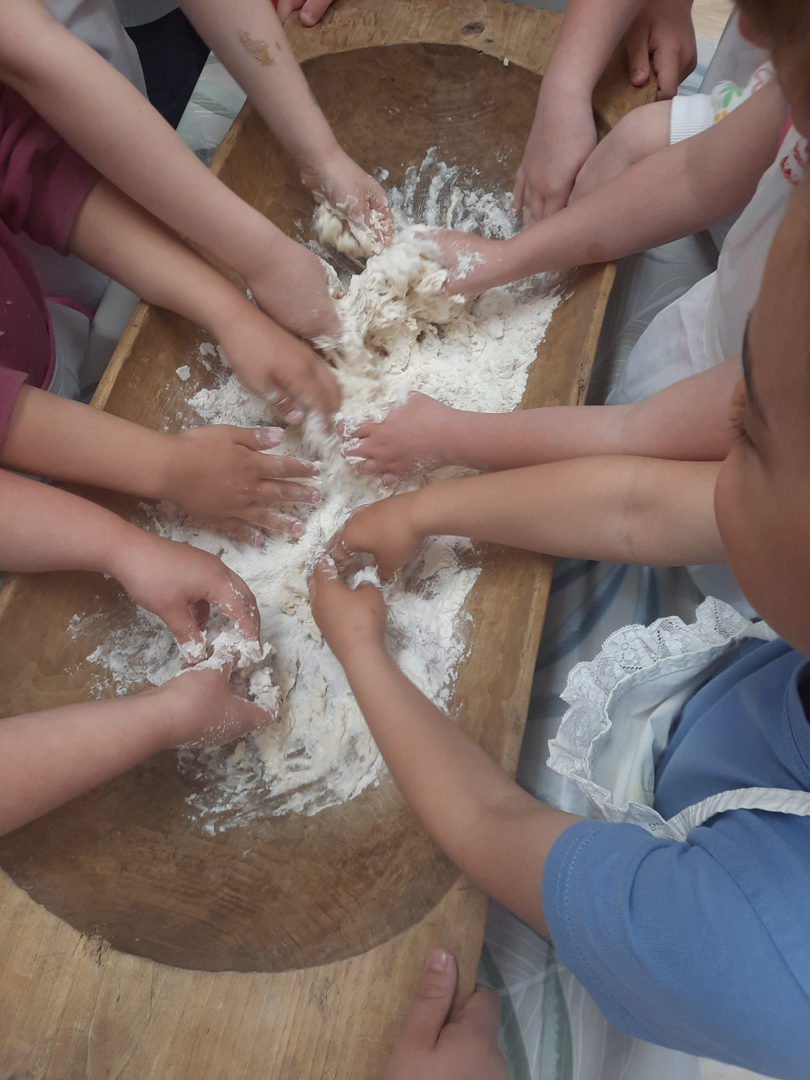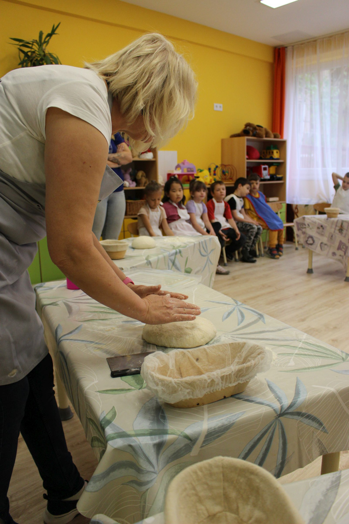 A gyerekek már nagyon készültek erre a programra, mert a sütés mindig hatalmas élmény számukra, így történt ez most is. Az esemény azzal kezdődött, hogy Andrea bevezette a gyerekeket a kenyérkészítés világába. Egyszerű és érthető módon magyarázta el nekik a liszt, víz, élesztő és só összetevők fontosságát, valamint a kenyérsütés folyamatát. Andrea mesélt nekik a kenyér készítés hagyományairól és az ősi technikákról. Miután megismerték a kenyér készítés alapjait, a gyerekek lehetőséget kaptak arra, hogy elkészítsék saját kenyértésztájukat. Kézműves tevékenységben minden gyermek ügyességét kamatoztathatta, ahogy apró kezek a tészta formálásába merültek. Amikor elkészült a tészta a gyerekeket Andrea a sütőhöz invitálta, ahol a megformált kenyeret a forró sütőbe helyezte. Végül a sok munkának meglett a gyümölcse, a kisült kenyeret a gyerekek élvezettel fogyasztották el. Az óvodás gyerekek számára ez az esemény nem csak egy egyszerű kenyérsütés volt, hanem egy felejthetetlen élmény, amely gazdagította a tudásukat és fejlesztette a kreativitásukat. Andrea a délelőtt folyamán izgalmas lehetőséget kínált a gyerekeknek, akik így megismerkedhettek a kenyérkészítés régi hagyományával, még abból az időből, amikor a családok még otthon sütötték a kenyeret.