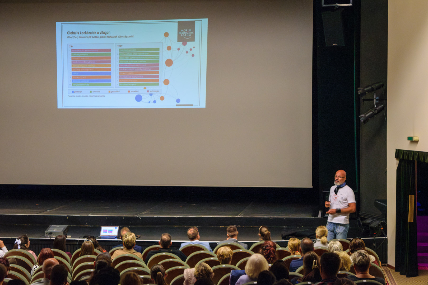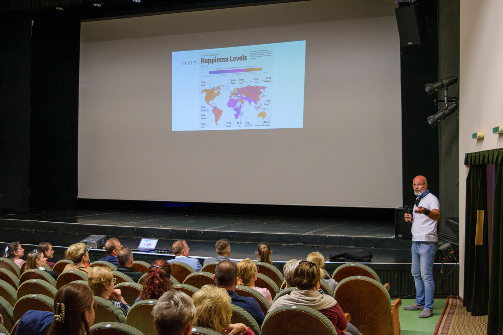 Mentőorvos, oxyológus főorvos, egyetemi docens, mindezek mellett közvetlen, szókimondó, nem szépeleg, nincs tekintettel a rangokra és címekre, de ha minden kötél szakad standuposként is meg tudná keresni a kenyerét: Zacher Gábor tartott előadást Szarvason, a Cervinus Teátrum nagytermében április 30-án délután.