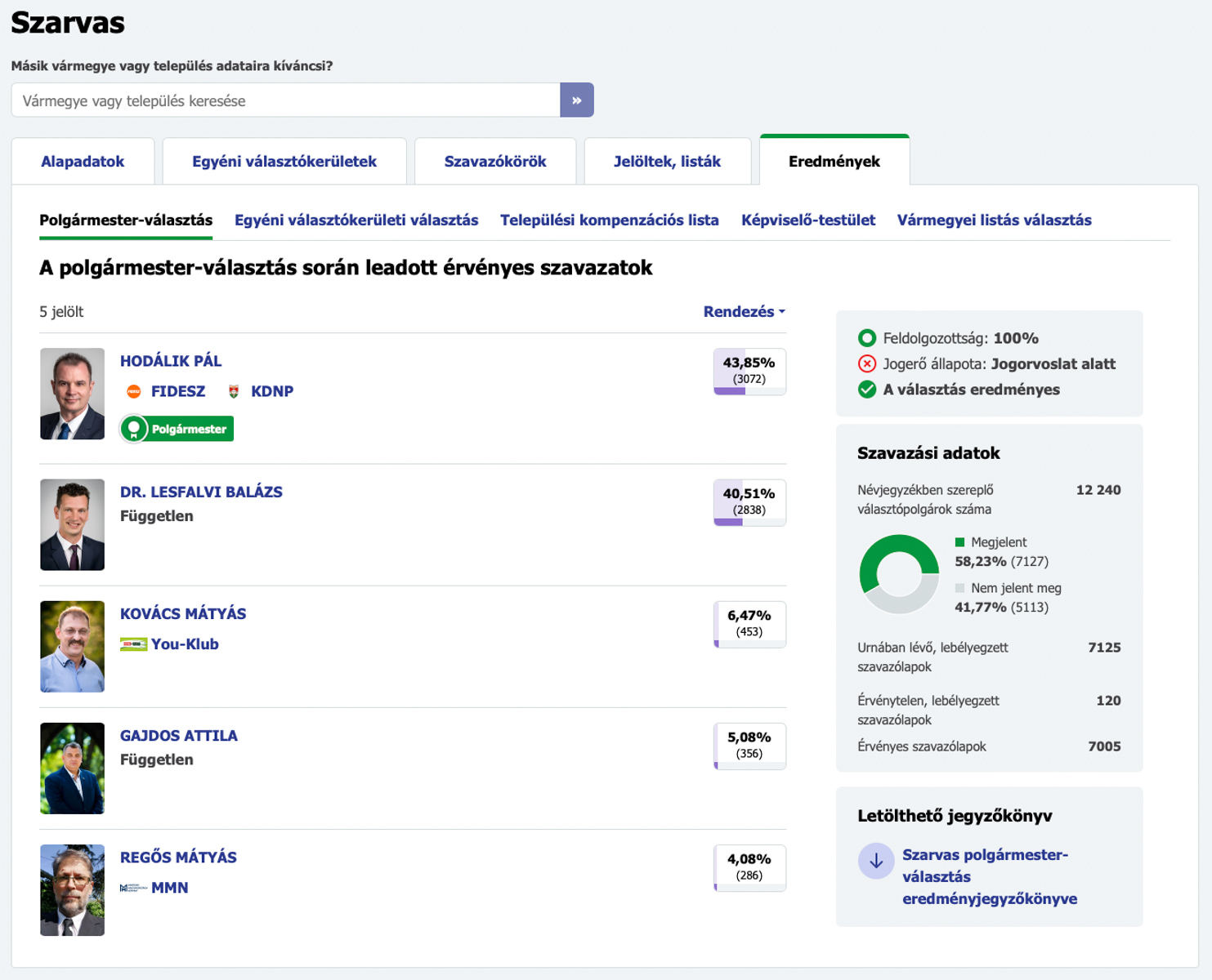 Szarvason a polgármester választás és a 8. sz. egyéni választókerület képviselő-választása még nem emelkedett jogerőre, mert a törvény szabta lehetőséget kihasználva dr. Lesfalvi Balázs polgármesterjelölt és képviselőjelölt fellebbezést nyújtott be az eredményt megállapító határozattal szemben a Helyi Választási Bizottsághoz.