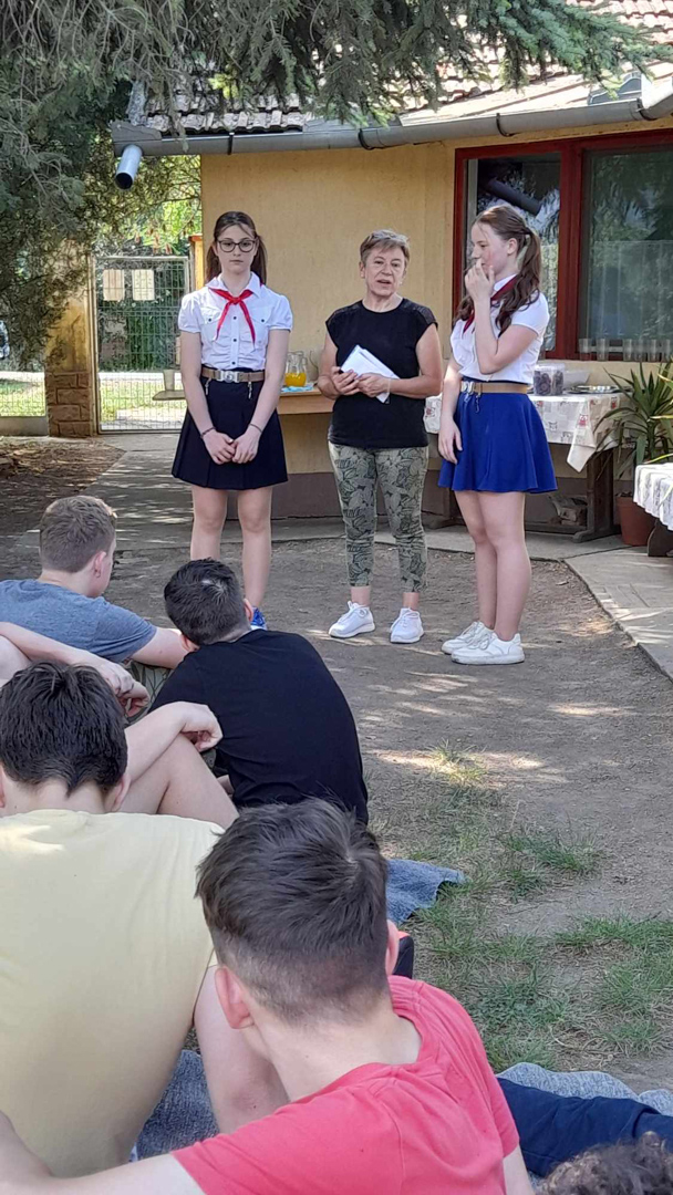 A projekt végén az összegyűjtött matricákat „piroshasú százforintosokra” válthatták be diákjaink, amit a záró rendezvényen a retrotrafikban kedvükre elkölthettek. A rendezvényre az iskolakertben került sor, ahol „Előttem az utódom” címmel fotókiállítást rendeztünk. A délután folyamán a szocialista ifjúsági találkozók hangulatát igyekeztünk visszaadni a zeneszámokkal, az ételekkel, az üdítőkkel.