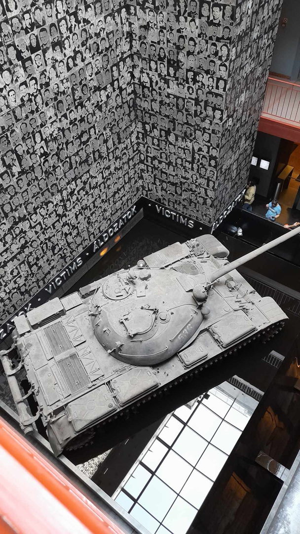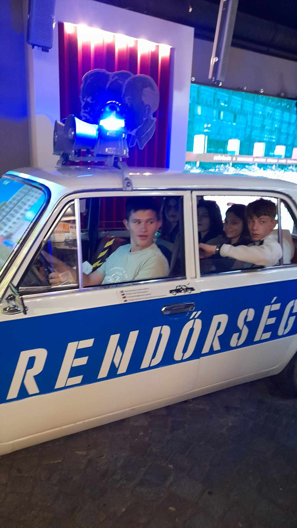 Délután a korszak „komolyabb arcát” ismerhették meg végzős diákjaink: a Terror Házába látogattunk el. Sokak számára megdöbbentő és egyben félelmetes volt szembesülni a politikai ideológia embertelen megnyilvánulásaival.