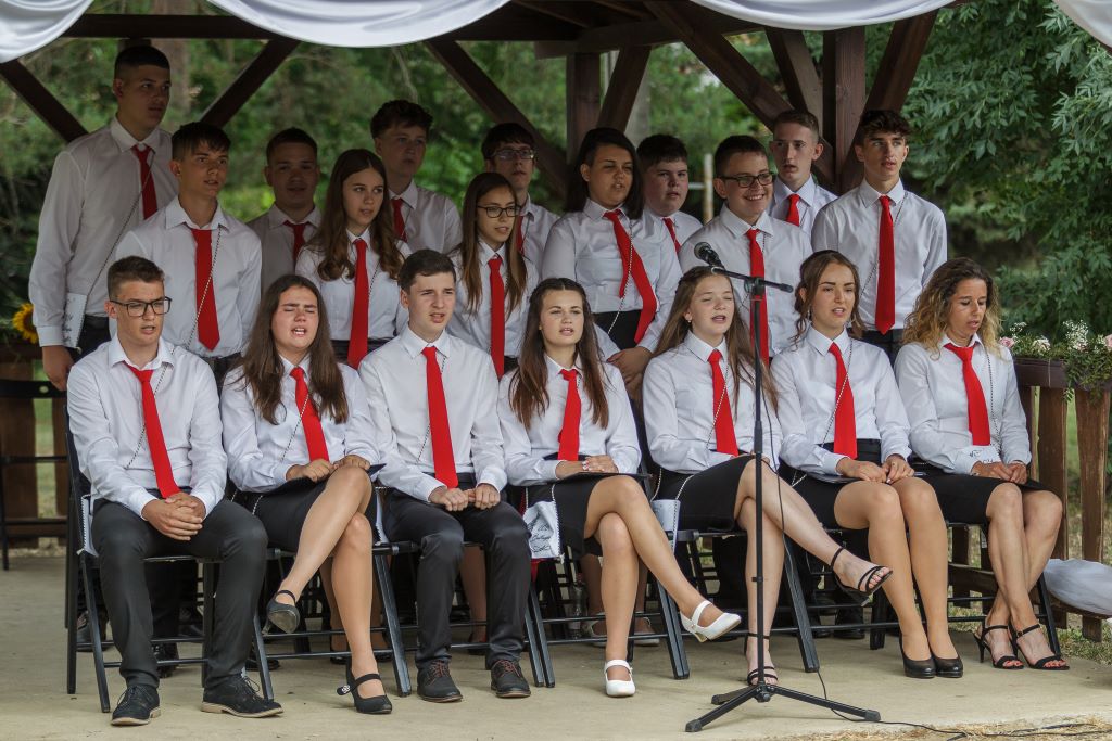 A ballagó diákoktól a 4. osztály nevében Házi Kinga köszönt el. A 7. osztályból Birghoffer Kinga búcsúztatta a nyolcadikosokat. Csillik Mónika és Kiszel Adrienn végzős tanulók köszöntek el az iskolától és dolgozóitól osztálya nevében, majd közösen megköszönték szüleiknek az évek alatt nyújtott támogatást és biztatást. Ezt követően iskolánk megbízott igazgatója, Pljesovszki Mihály búcsúztatta el a 8. osztályos tanulókat, útravalóul a nevelőtestület nevében egy könyvvel ajándékozta meg őket.
