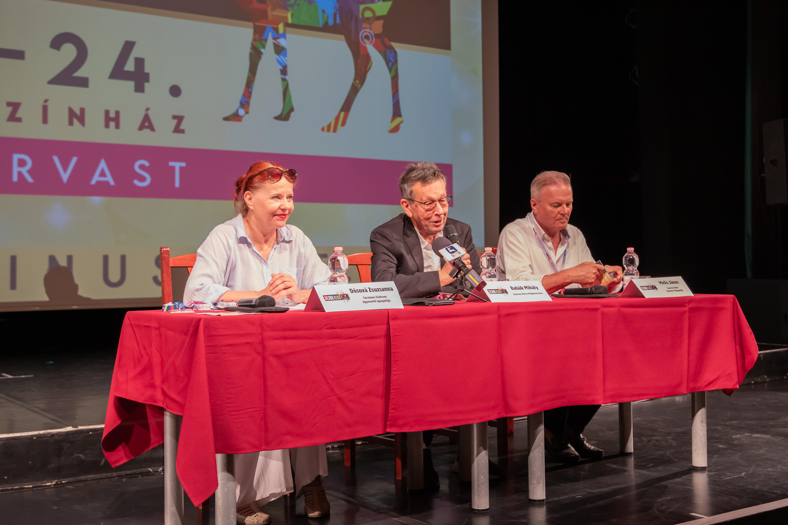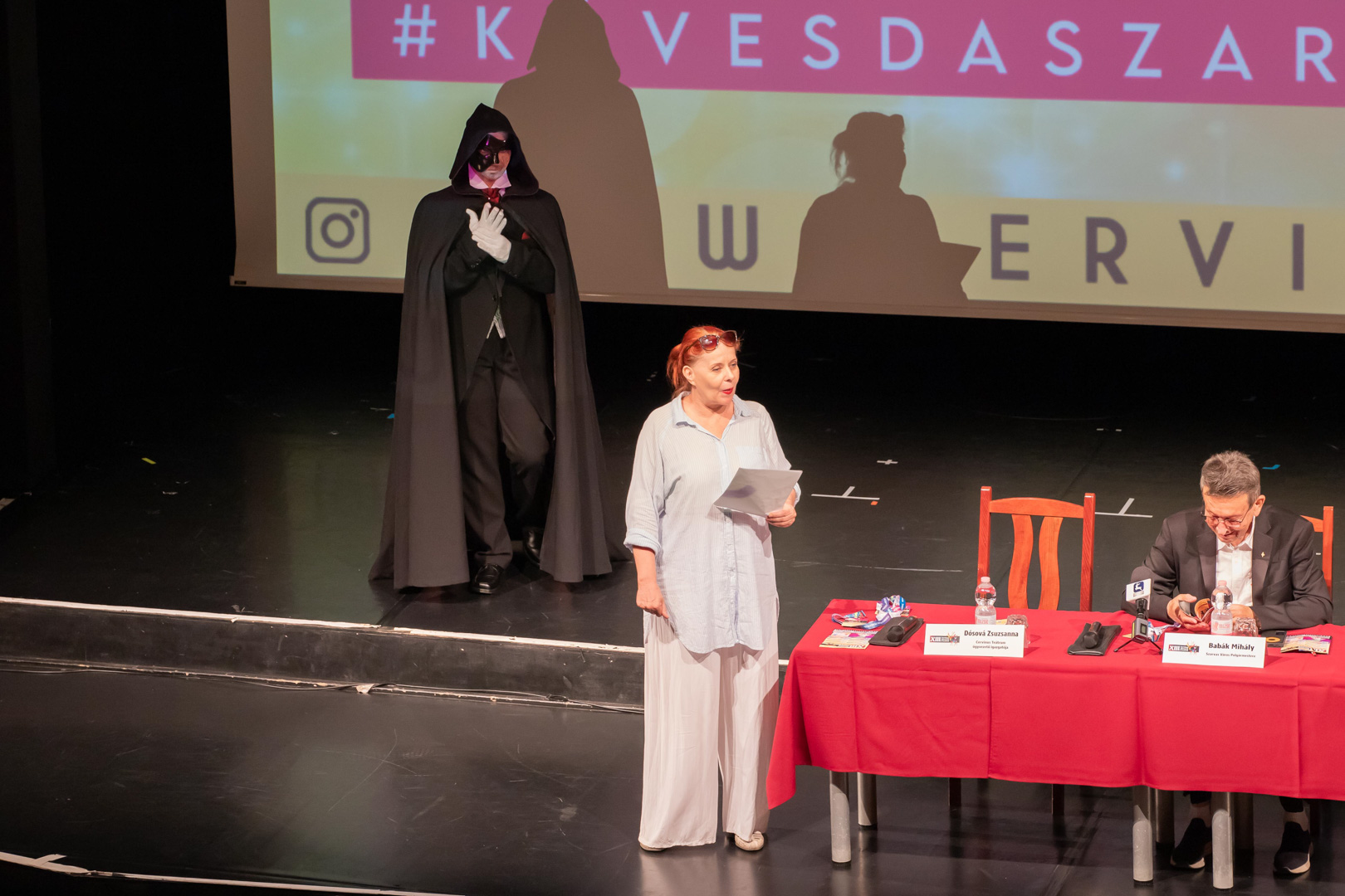 Dr. Dósa Zsuzsa a Cervinus Teátrum igazgatója köszöntötte a megjelenteket, akik nem csak a sajtó, hanem a civil szervezetek, a szervezők képviselőit, a CMF fiatal „házigazdáit”, a színház munkatársait és nem utolsó sorban a színház színészeit és két plusz egy meglepetésvendéget. A plusz meglepetésvendég néha át-át suhant a színpadon, a nézőtéren, de róla majd később.