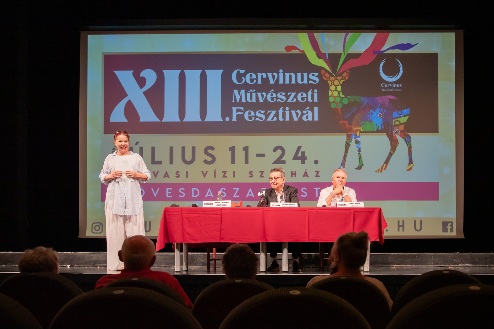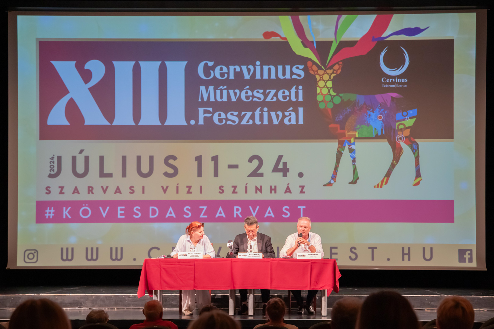 Július 2-án különleges sajtótájékoztatóra kaptunk meghívást, amely a XIII. Cervinus Művészeti Fesztivált hivatott bemutatni, amely 2024. július 11-24 között kerül megrendezésre a Szarvasi Vízi Színházban. A tájékoztató ezúttal az előző éveknél is sokkal különlegesebbre sikerült.