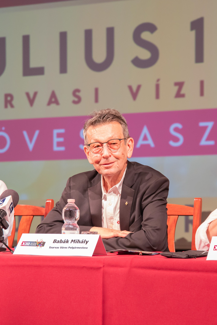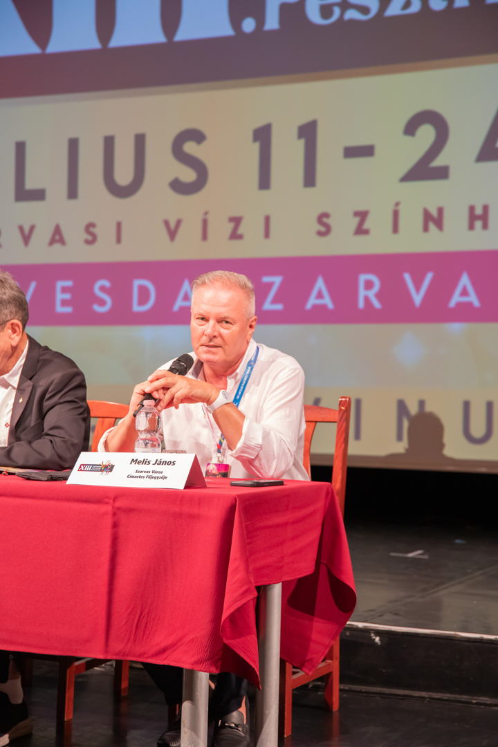 Babák Mihály Szarvas Város polgármestere és dr. Melis János Szarvas Város címzetes főjegyzője is köszöntötte a megjelenteket, mindketten nagy rajongói a Cervinus Teátrumnak, ezért elfogódottnak tűnhettek szavaik, de nem azok, csupán szeretettel, elismeréssel beszélnek a színházról, Szarvas színházáról! Dósa Zsuzsa ismertette minden szponzor nevét, köszönetet mondva nekik. Ezután hallhattuk a tizennégynap részletes programját és az esték hangulatfelelőseit is. A két meglepetés vendég közül Fürj Eriket hívta színpadra, aki a fesztivál egyik fontos attrakciójára hívta fel a figyelmet, amit Hegedűs Évivel közösen jegyeznek.