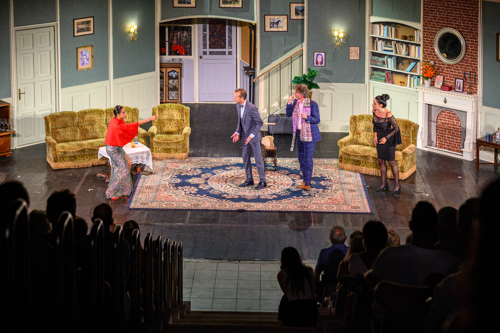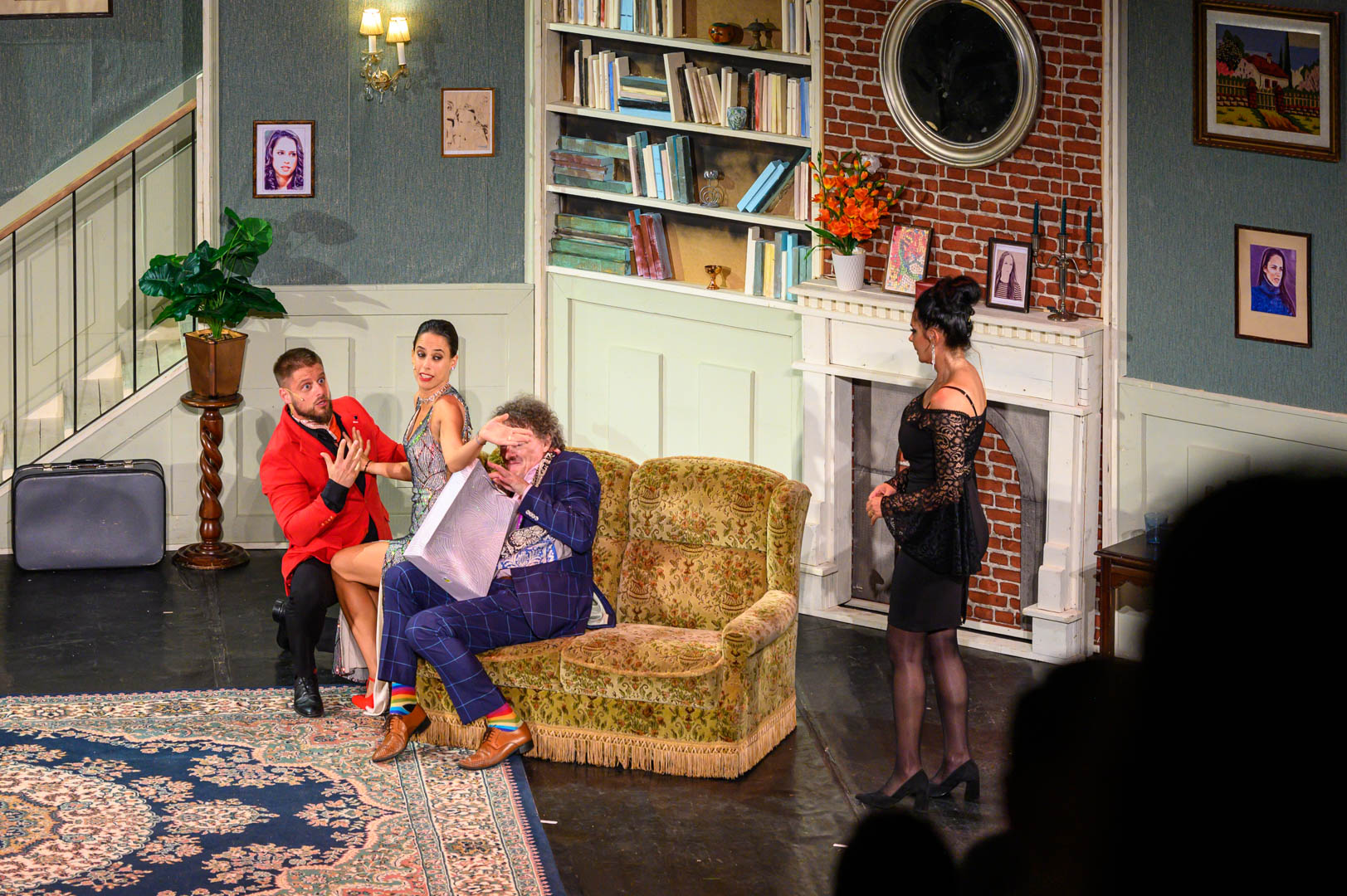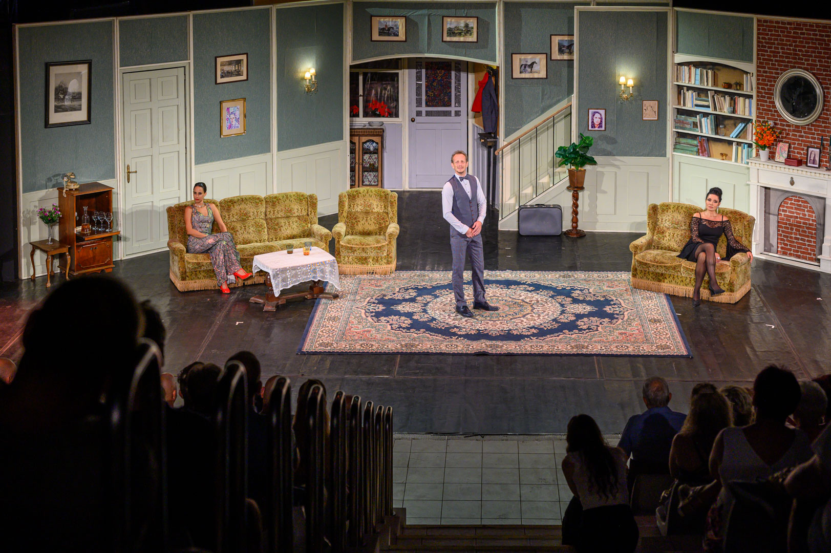 A házaspár, Clarice (Trokán Anna) és Roger (Suhajda Dániel) hétvégére készül Roger üzleti útra megy, Clarice otthon marad, ám két vendéget is vár, az egyik Rodney (Beleznay Endre), a lakberendező – bocsánat, belsőépítész – a másik Richard (Baronits Gábor), Clarice francia szeretője, aki csak ezért utazik Londonba. De Roger is tilosban jár, ő Daisiehez (Gregor Bernadett), a szeretőjéhez készül. Azonban Daisie telefonál, hogy az állomáson van, hamarosan érkezik. Nos a férj azt se tudja mit csináljon, az egyik telefont a feleség is hallja, és beszélni kezd a Daisievel, mert a barátnője, akit meghív magához hétvégére. Itt kezdődik a galiba, mert a férj is otthon marad, mert hirtelen „lemondták” a megbeszélést – mondja. A belsőépítész érkezik elsőnek, (Roger nem akarja felújítani a házat, Clarice igen, ezért a titkolózás). Clarice „eldugja” Roger elől a belsőépítészt. Jön Daisie, akinek a feleség mindent elmond. A terv az, hogy a szeretőt adják „el” a nő férjeként – ami ugyan a barátnőnek nem tetszik, ellenkezik is, de nem mondhatja el a valódi okot. A feleség közli az éjszakai jövés-menést is, ki hová megy majd, nem sejtve, hogy barátnője és a férje is szeretők, kéri Daisiet, hogy beszélje meg Richarddal, amit ők megbeszéltek, ha megérkezik.