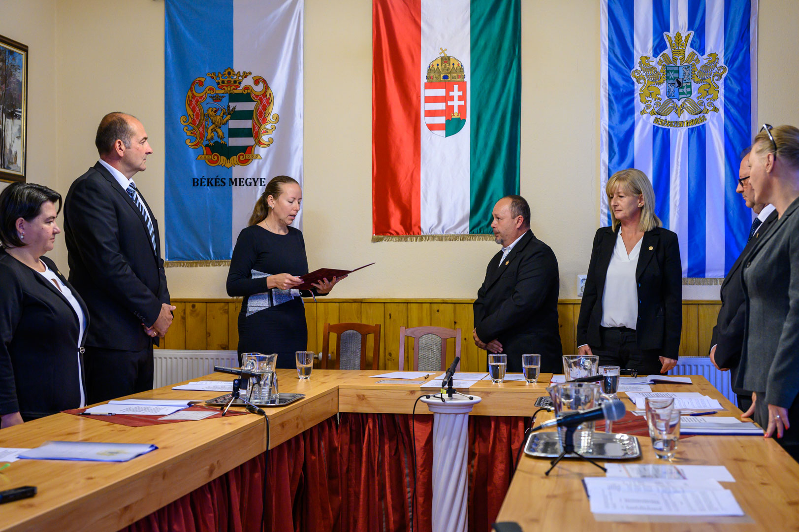 Dr. Kozák Réka átadta a megbízóleveleket a képviselőknek. Az esküt követően következtek az alakuló ülés napirendi pontjai.