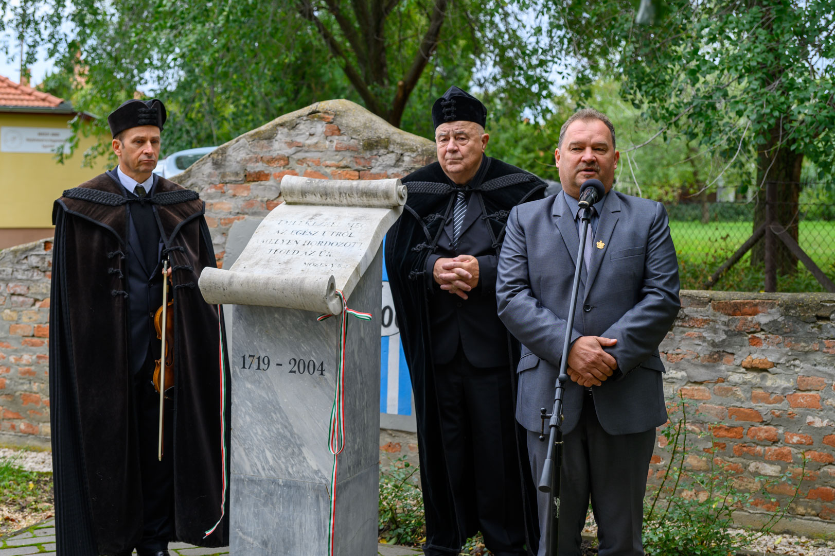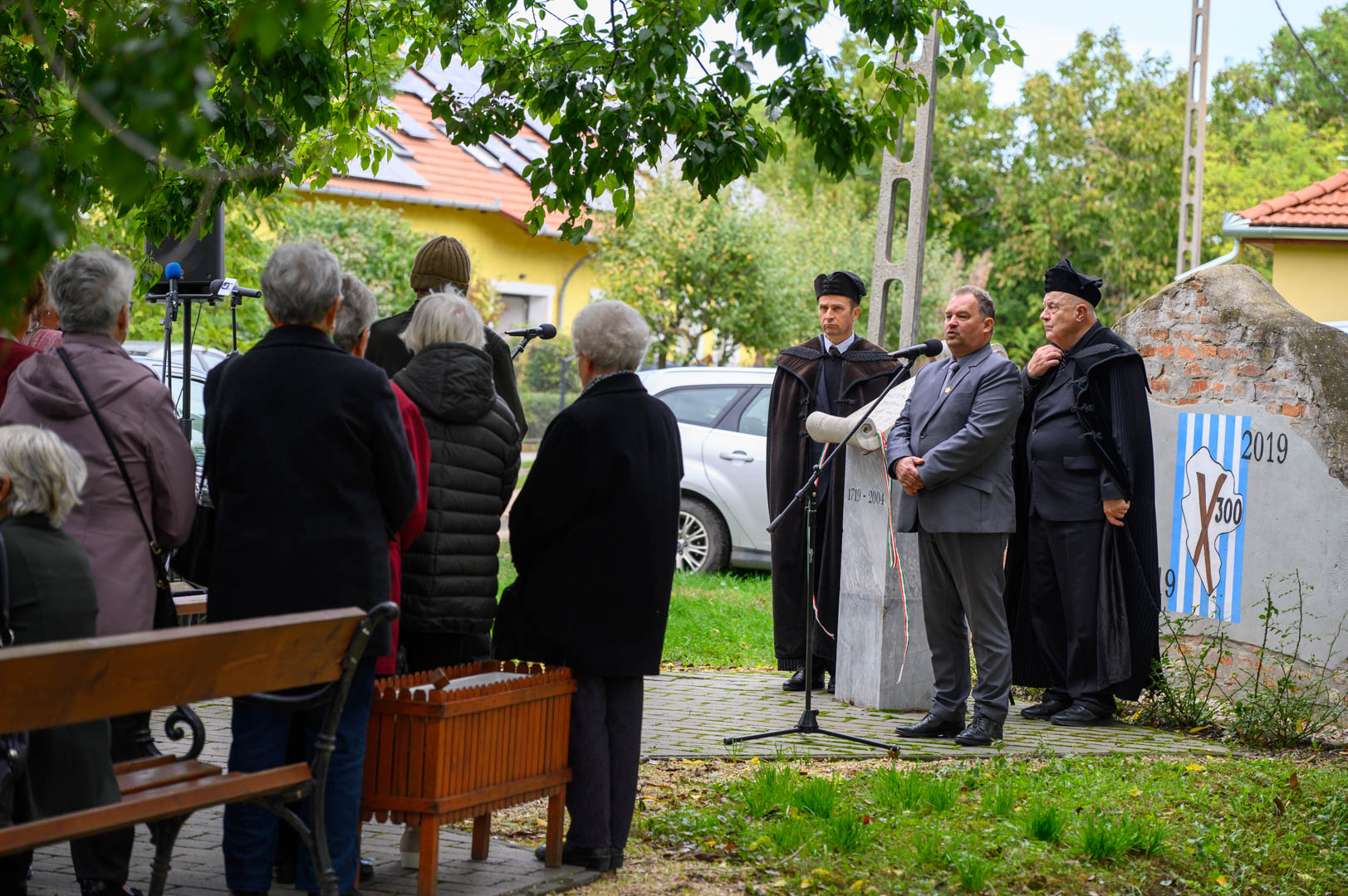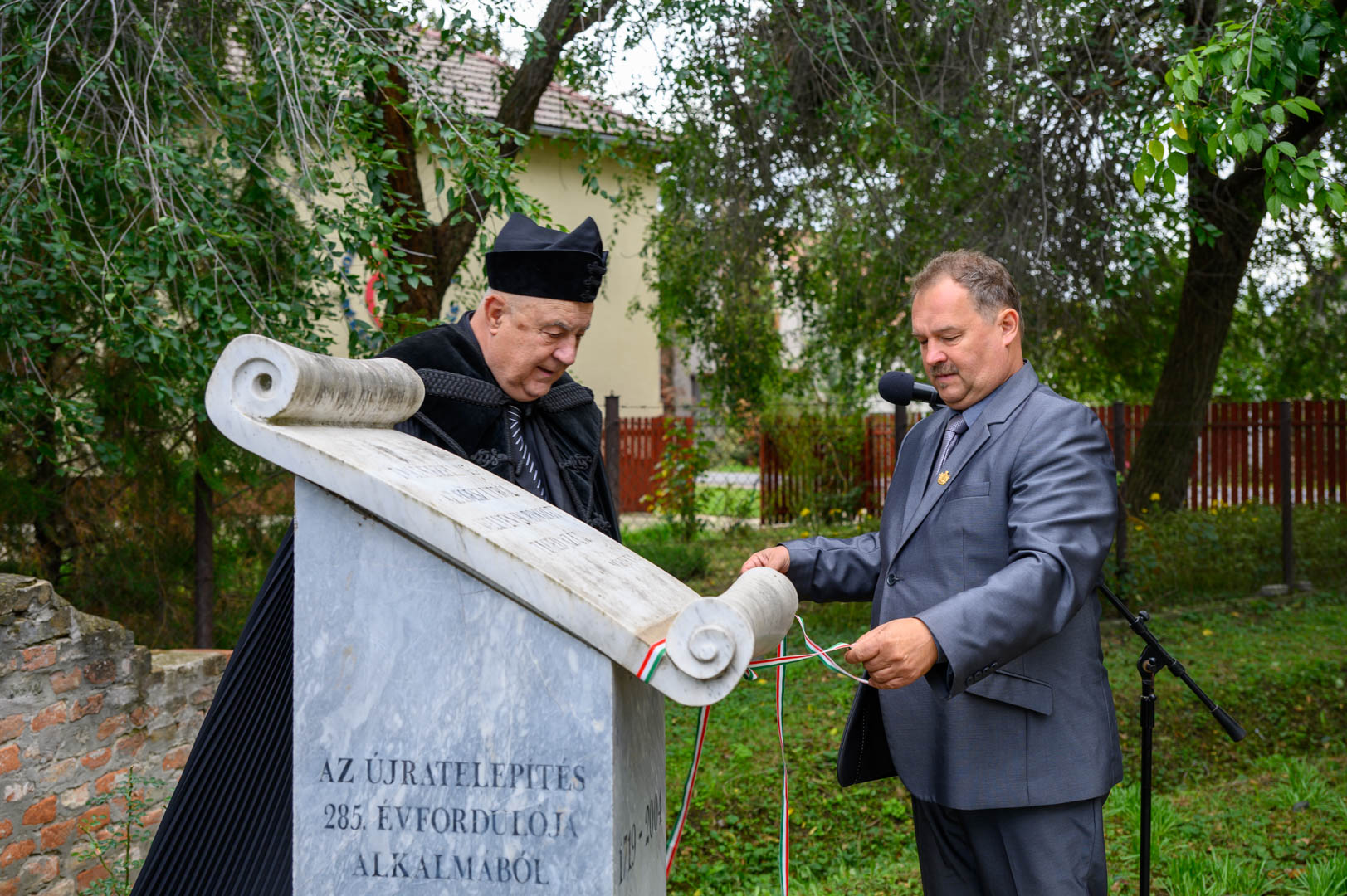 Hévizi Róbert, a Békéssy János Helytörténeti és Hagyományőrző Egyesület elnöke felidézte azt a 20 évvel ezelőtti, 2004. szeptember 18-i ünnepi eseményt, amikor az akkor 200 éves református templom oldalában felavatták az újratelepítési emlékművet.