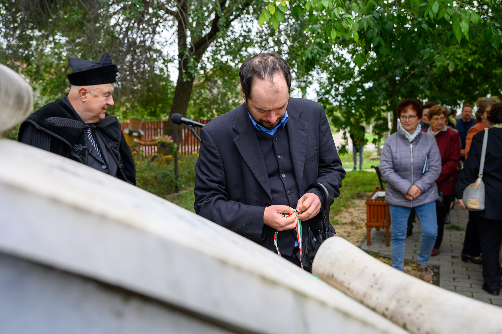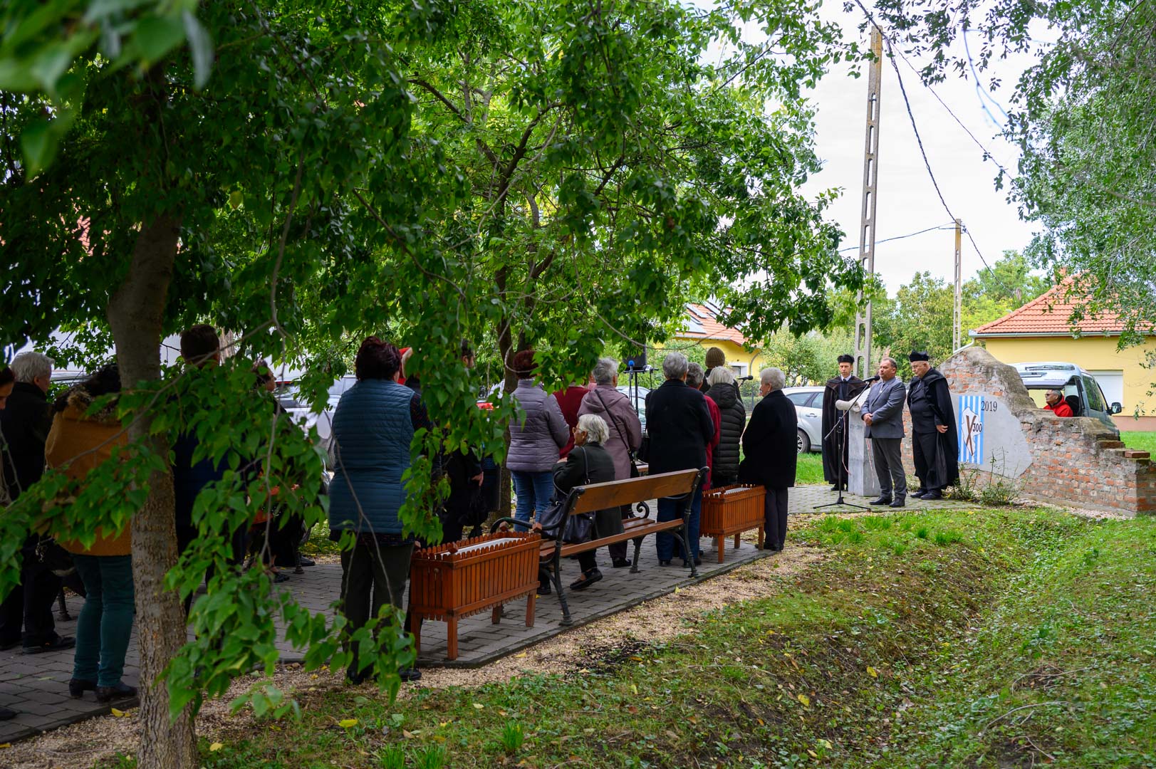 Miután a megemlékezés tagjai a református templom építésének 220. évfordulójára celebrál istentiszteletről érkeztek, az egyesület elnöke ezúttal történelmi visszatekintésében is annak építése köré fonta gondolatait. Tisztelgett az elődök azon erőfeszítése előtt, akik az akkori építkezésben szerepet játszottak, támogatták azt, mikor a településen még vert falú földbe vájt házak voltak. Ezt követően a falubeliek iskolát építettek, közösségi teret hoztak létre. Azért mertek ezekhez az építéséhez hozzákezdeni, mert volt hitük, annak pedig már háza, ami szilárdan állt.