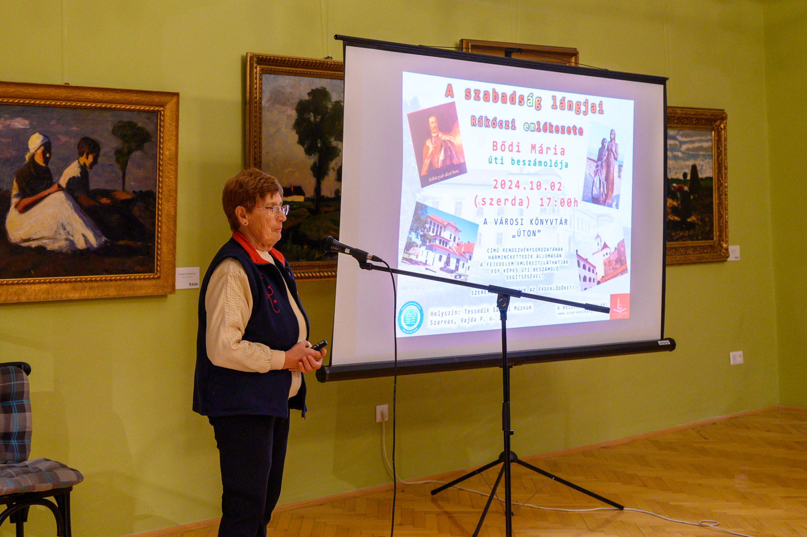 Az országos könyvtári napok keretében Bődi Mária a Rákócziakról, de legfőképp II. Rákóczi Ferencre fókuszálva tartott országjárást a trianoni határokon innen és túl. “Bődi Mária személye biztosíték arra, hogy egy igazán különleges utazásban vehetünk részt”, vezette fel az Úton című előadássorozat 32. állomásának előadóját a Tessedik Sámuel Múzeum dísztermében Molnárné Pető Beáta, a Városi Könyvtár vezetője.