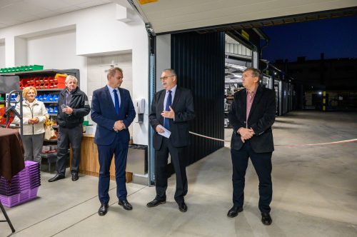 A köszöntőket követően Viczián László, Hodálik Pál, Bődi Péter és Tóth Miklós átvágta a nemzeti színű szalagot, ezzel formálisan is átadva a beruházást a vevőknek, illetve az ott dolgozó munkatársaiknak.