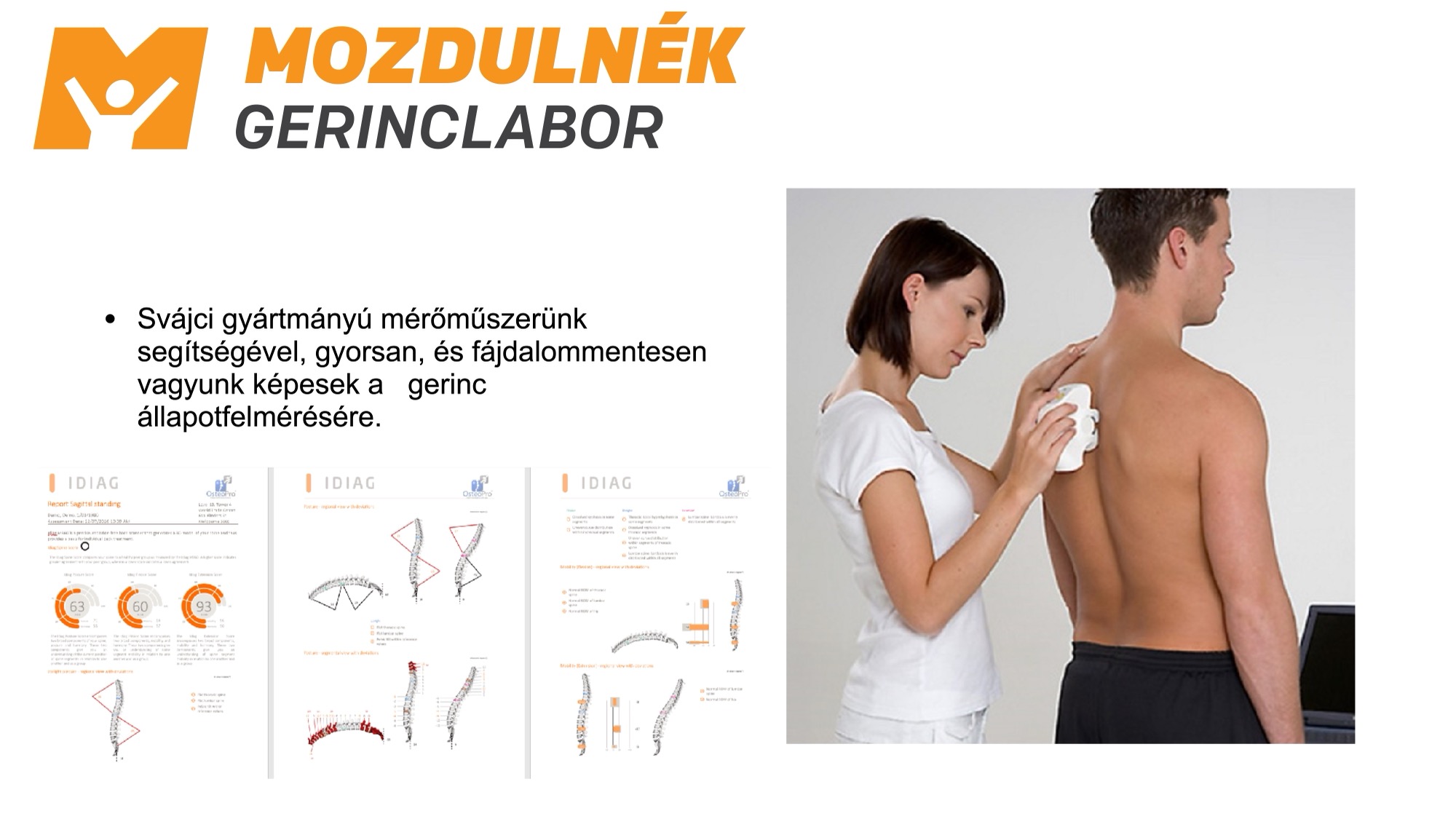 - Gerincállapot felmérés: a „gerincegér” nevű speciális eszközzel történik.