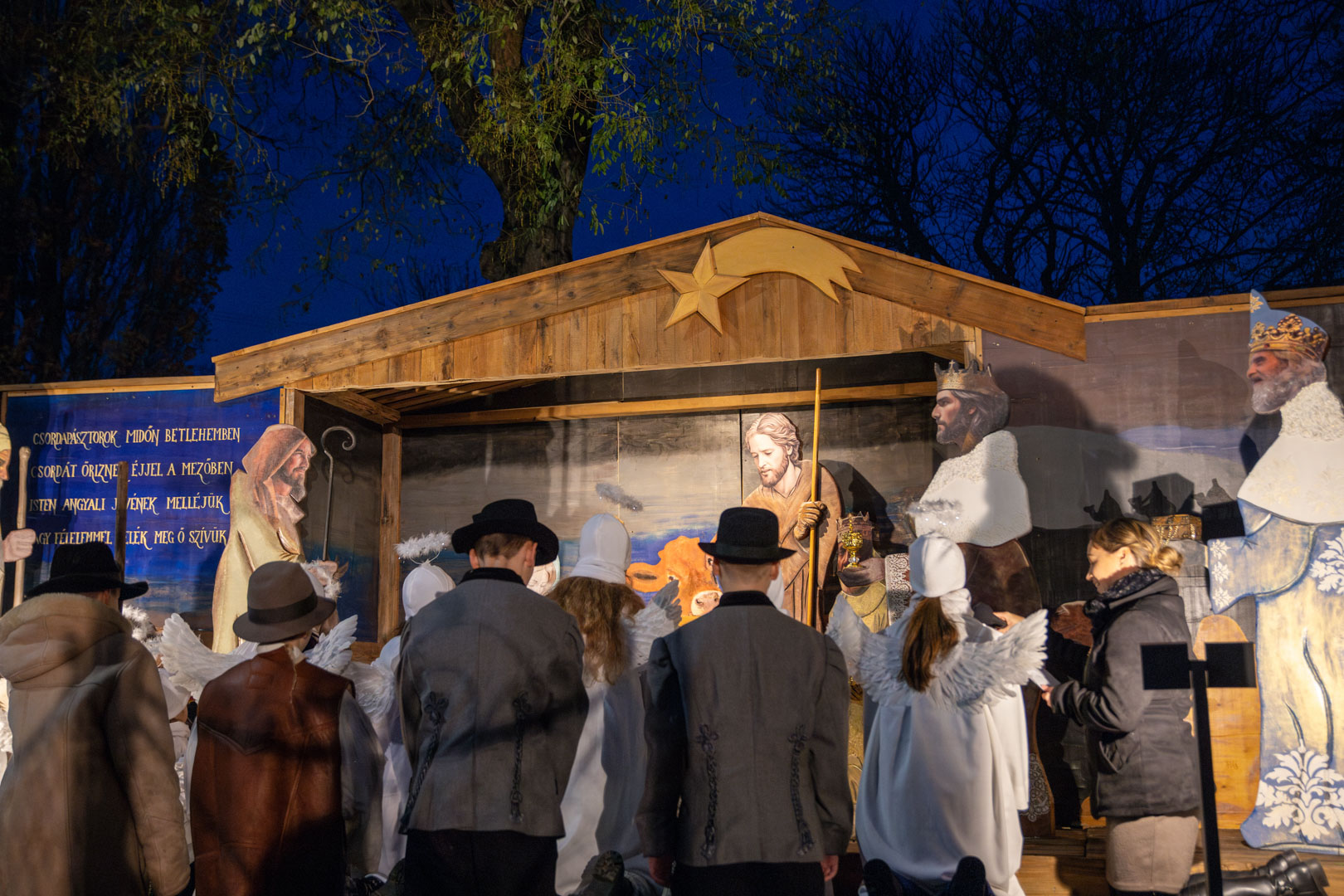 A bibliai történetnek emléket állító alkotást egy kortárs elemekkel megálmodott betlehemezéssel egybekötve adták át a készítők. A Betlehem ötletgazdái Szécsi Viola és Major Imre voltak, és ahogy az lenni szokott: a nagyszerű ötlethez egy nagyszerű csapat is alakult. A kicsitől a nagyig, az óvodástól a nyugdíjasig, a férfitől, a nőig, a háziorvostól a tanyán élő gazdaemberig, mindenki képviselteti magát a betlehemes csapatban: 33 szereplő, főként békésszentandrásiak, de vannak szarvasi barátaik, akik szintén önzetlenül csatlakoztak a kezdeményezéshez. Az alapanyagokat, eszközöket saját forrásból finanszírozták, az adódó nehézségeket kreativitással oldották meg.