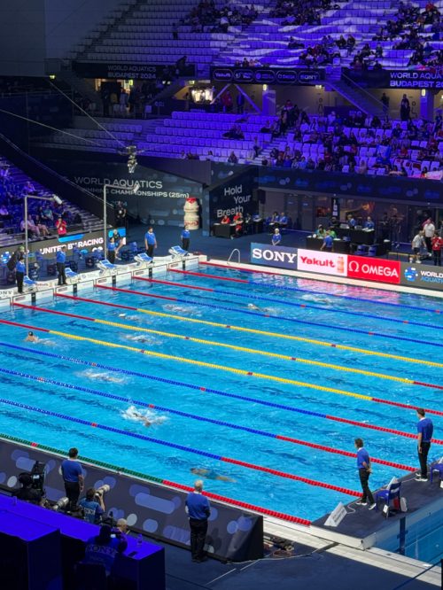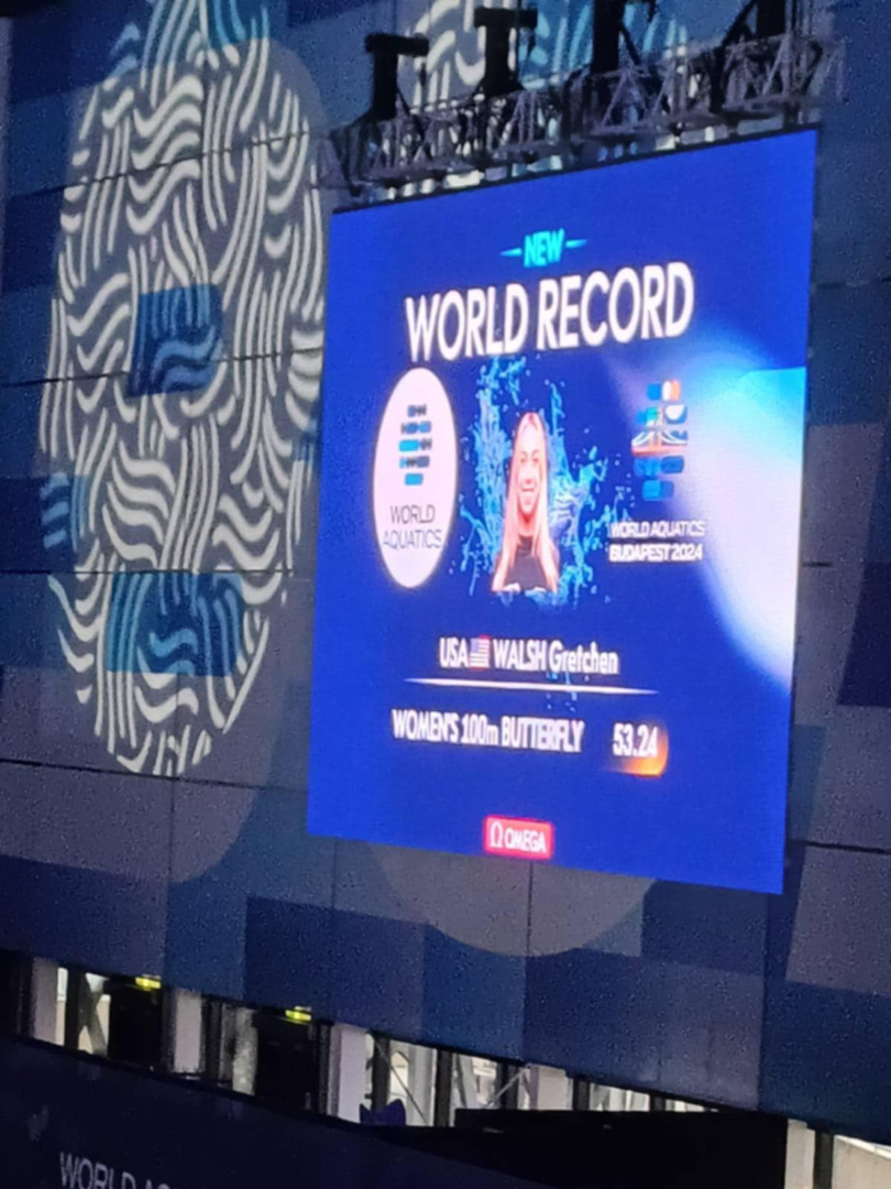 A „kedvünkért” Walsh Gretchen még egy világcsúcsot is úszott. Kós Hubert pedig… Kós Hubertesen úszta be magát a délutáni döntőbe. Mi pedig szarvasi módra szurkoltunk neki – telitorokból, minden eszközt bevetve-.