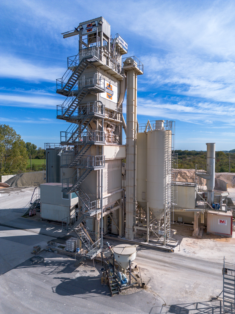 A keverőből a szállítószalagon a hevítődobba megy, majd az elevátor felviszi az osztályozó rostára. A különválasztott frakciókat bemérik, melyikből mennyi menjen a keverőbe, ahol felhevítik, illetve mészkőlisztet és bitument adnak hozzá. Onnan a készanyagtárolóba kerül, ahonnan 180 fok körüli anyagot adnak ki.