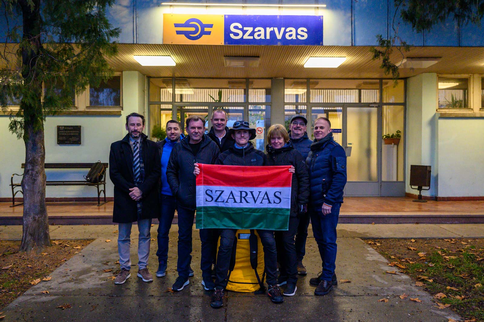Ábel tegnap felszállt a kis pirosra, hogy bemelegítésként egyből a túra második legnehezebb szakaszát kipipálja, jeges esőre szóló narancs színű figyelmeztető jelzés mellett vonattal eljusson Budapestre. Szülein, Magdin és Palin kívül kikísérte őt Hodálik Pál polgármester, valamint a képviselő testület néhány tagja is.
