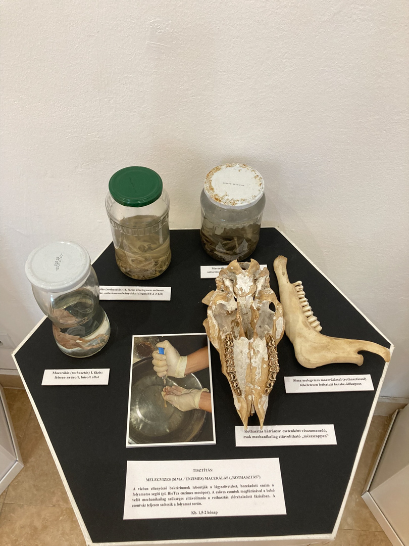 A tárlat számos madárcsontváz preparátumot mutat majd be káprázatos természetfotó kísérettel. A csontpreparátumok között három Európa-bajnoki díjat érdemlő munka, azok plakettjei, oklevelei is bemutatkoznak. A tárlat felvonultatja a készítő rackajuh koponya gyűjteményét is, mely a különböző szarv állásokat, csonttani elváltozásokat szemlélteti majd. A csontok között szerepelnek továbbá szürke marha és heck-marha, illetve a magyar kutyafajták (komondor, kuvasz, puli), különféle ragadozó állatfajok koponyái is. A kiállítás foglalkozik majd a preparátum készítés fázisaival illetve a gyerekeket gyermekfoglalkoztató résszel is szórakoztatni fogja.
