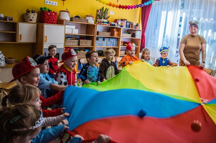 Az Alma csoportba a meseerdőből két kicsi bocs és a róka jött, akik vidám játékokkal örvendeztették meg a gyerekeket. Szállt a színes ejtőernyő a magasba, de még magasabbra szálltak a színes labdák, amiket a bocsok hoztak ajándékba. Róka koma most is csak a hasára gondolt, és sok finomságot hozott, de furfangos játékkal keverve ám, hogy ne legyen könnyű dolguk a gyerekeknek megszerezni azokat.
