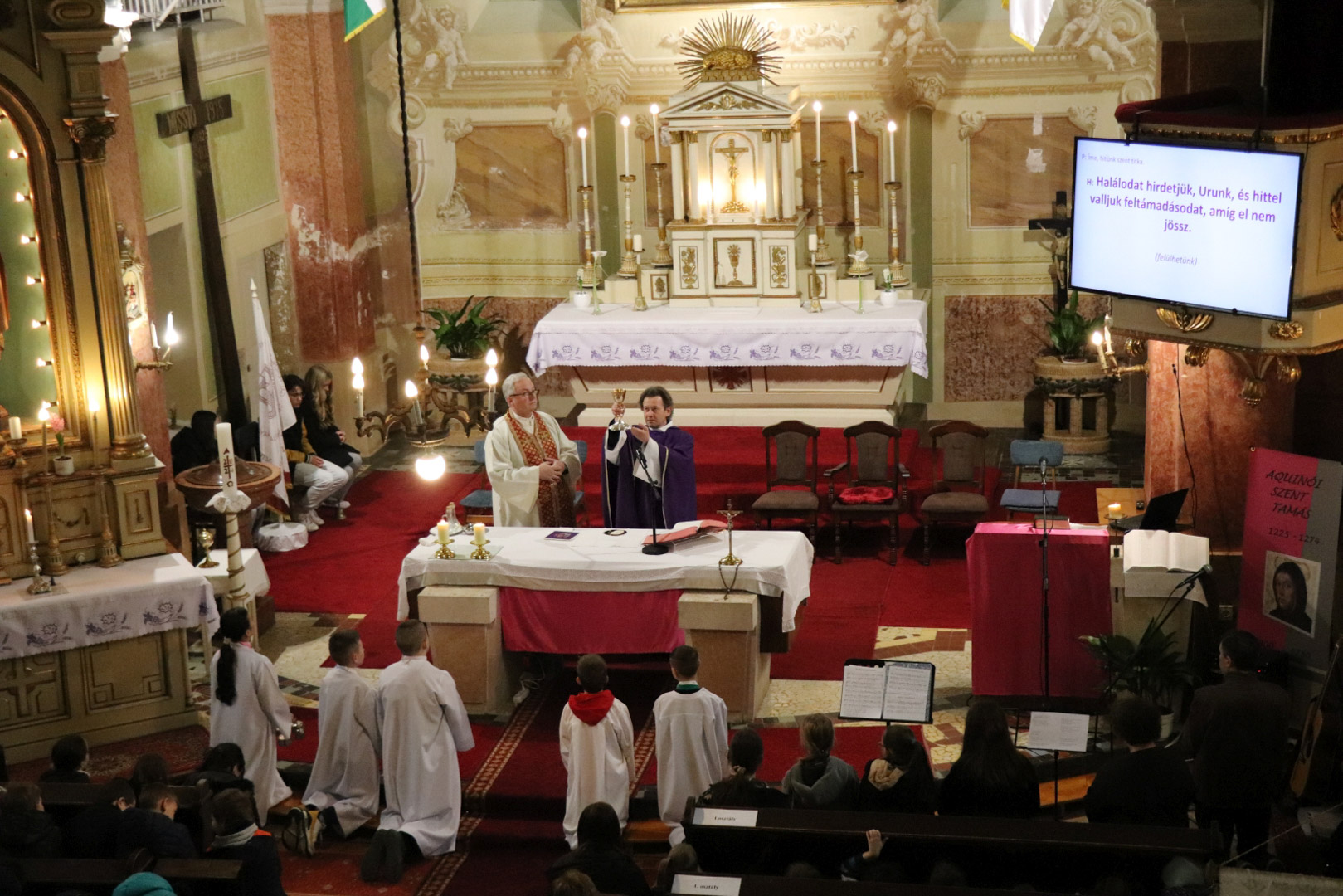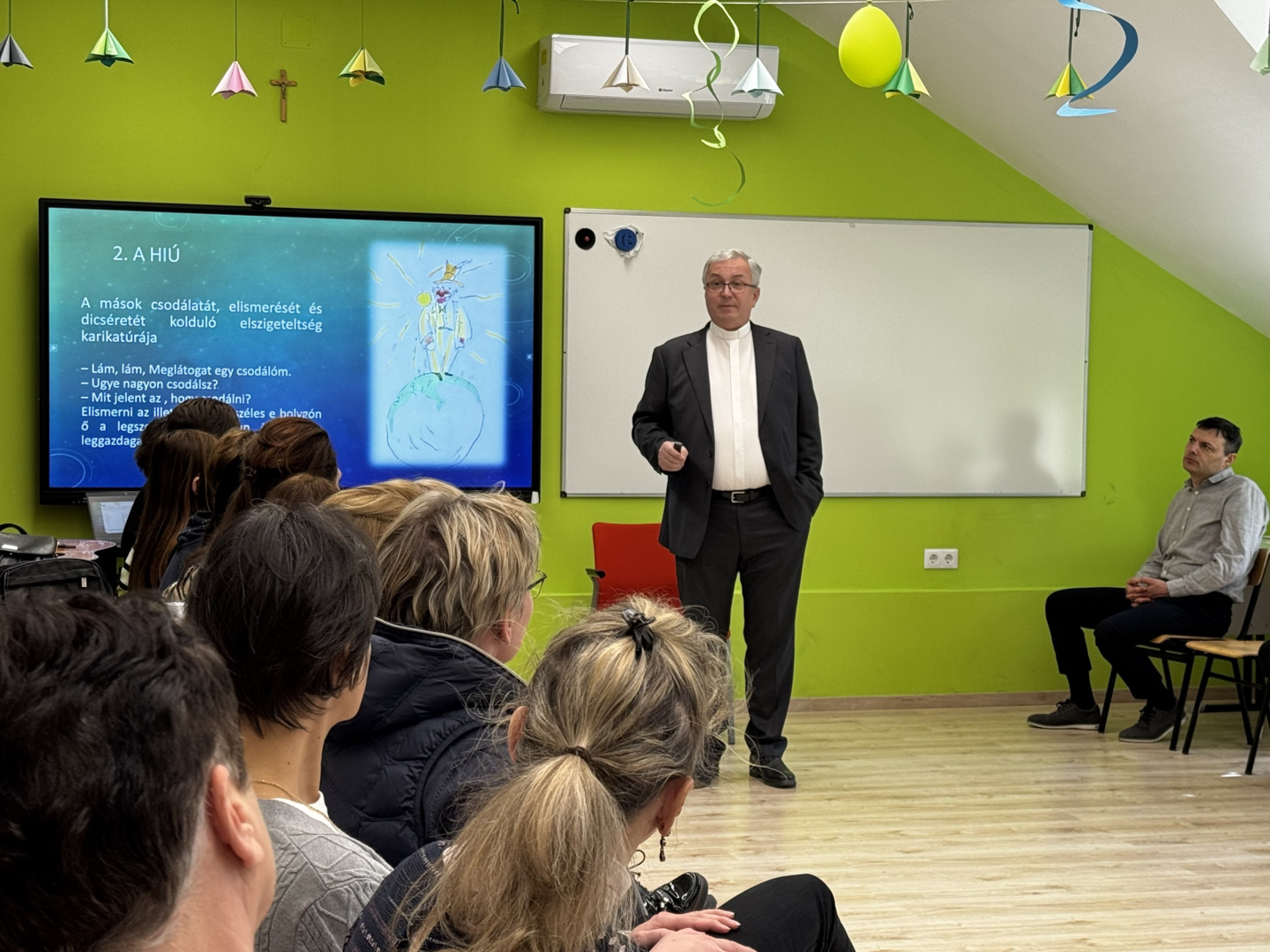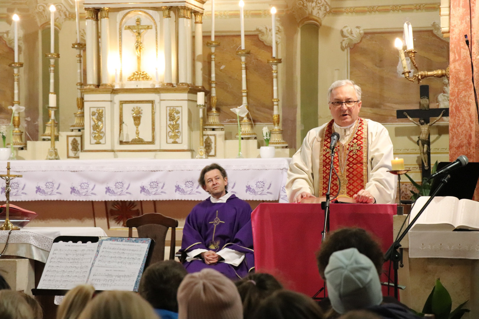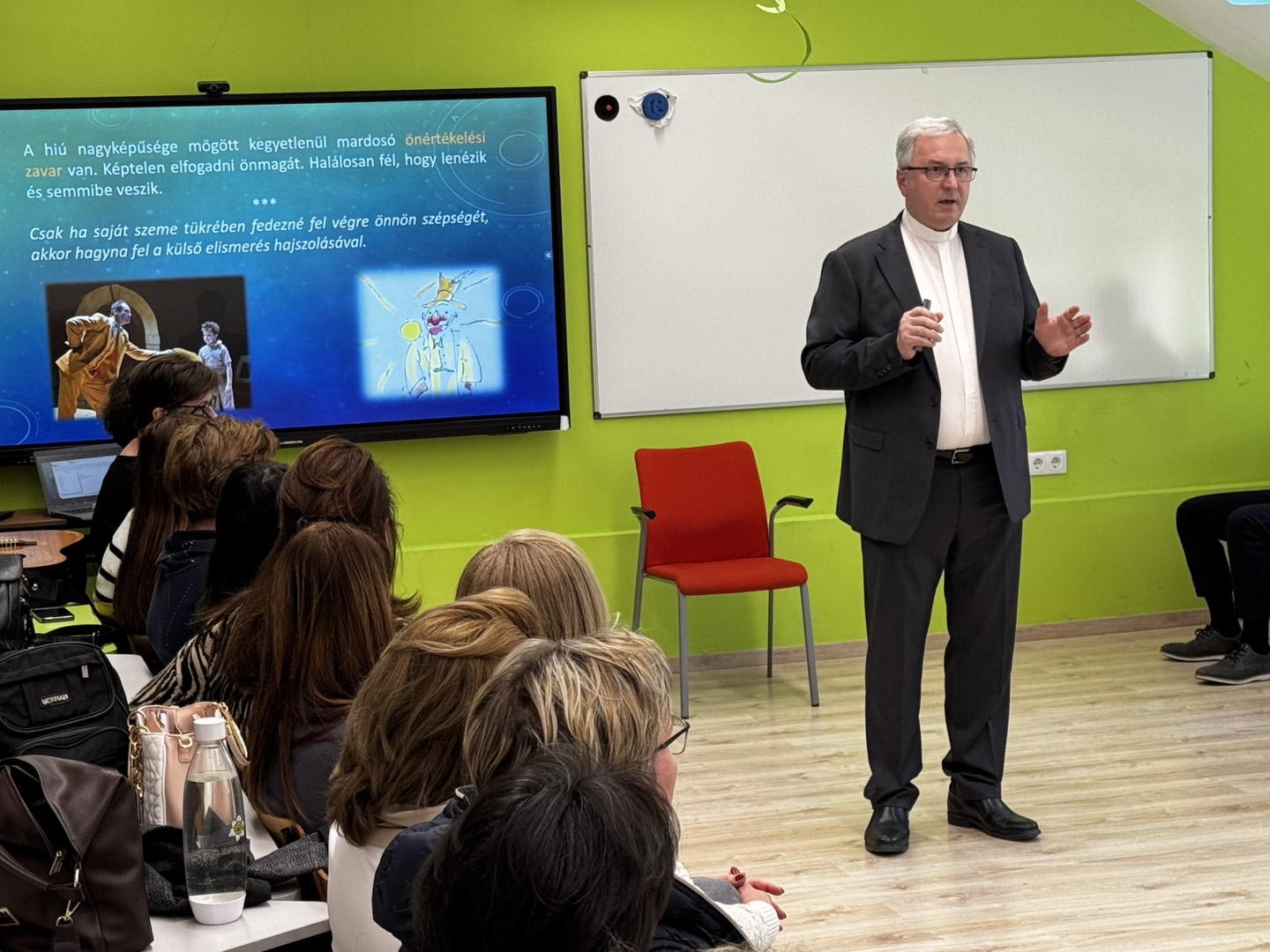 2025. április 8-án 9:00 órakor indult meg a GFE Szarvasi Gyakorlóintézményének iskolazászlójának vezetésével és a lélekharang kondulásával a 2025. évi tavaszi zarándoklat a Katolikus Temető Bolza kriptájához és Tessedik Sámuel evangélikus lelkész sírjához. A zarándoklat zárásaként az iskolapolgárság iskolai szentmisén vett részt a Szent Klára Római Katolikus Templomban, ahol a misét Ft. Dr. Liszkai Tamás plébániai kormányzó, egyetemi docens és Ft. Dr. Janka Ferenc rektorhelyettes, főiskolai tanár celebrálták. Zenei szolgálatot tett Vincze János hitoktató és zenész gyakorlós csapata. Dr. Janka Ferenc homíliájában felidézte szarvasi gyermekkori emlékeit édesapjával, és József Attila versén keresztül fogalmazott meg nagyböjti, húsvétra hangoló üzenetet a gyakorlóintézmény gyermekeinek, nevelőinek. A délutáni folytatásban Költészet-napi koncerten vehettek részt az intézmény felső tagozatosai, a Kamasz-egyetem program keretében a 4Hands Band előadásában, Molnár János gitárművész és Nánási Attila színművész, a magyar költészet gyöngyszemeiből adott válogatást. Az alsó tagozatos gyermekek számára a hitnevelők készültek filmvetítéssel. A nevelőtestület tagjai, húsvétra hangoló rekollekción vettek részt, Janka Ferenc atya vezetésével „Hercegi diagnózis királyi terápia” címmel. A különleges és felemelő lelkigyakorlat alkalmával lélekemelő nagyböjti élményben lehetett része a nevelőtestületnek, mélységekkel és magasságokkal, humorral, szenvedélyességgel, lét-megvilágító „ablaknyitogatásokkal”, szívbe markoló biblikus üzenetekkel, a szeretet üzenetével, a bűn és bocsánat vissza-visszatérő kérdésével, József Attila csodálatos „vers-zsoltáraival”, az atyai szeretet különleges megnyilvánulásaival, a boldogság felszabadító érzésével, az értelmes hit, a szabadító remény és a szeretet örömével… Az Istenkapcsolat életátalakító erejével. A szeretetben való együttlét élményével. Húsvétra készülve.